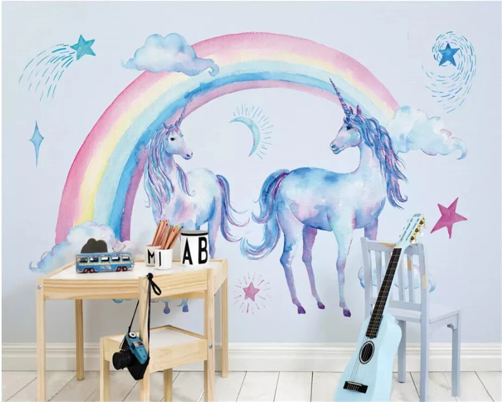 Beibehang индивидуальные большие обои 3D фото роспись японская Милая Красивая Радуга Единорог ПЕГАС фон для стен бумажная роспись icon star icon star icon star icon star icon star