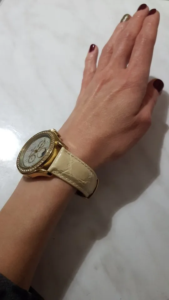 Не очень понравился ремешок. Сомневаюсь, что это натуральная кожа, довольно жесткая кожа и не очень длинный, хотя запястье моей руки не широкое.Доставка очень быстрая. Спасибо.