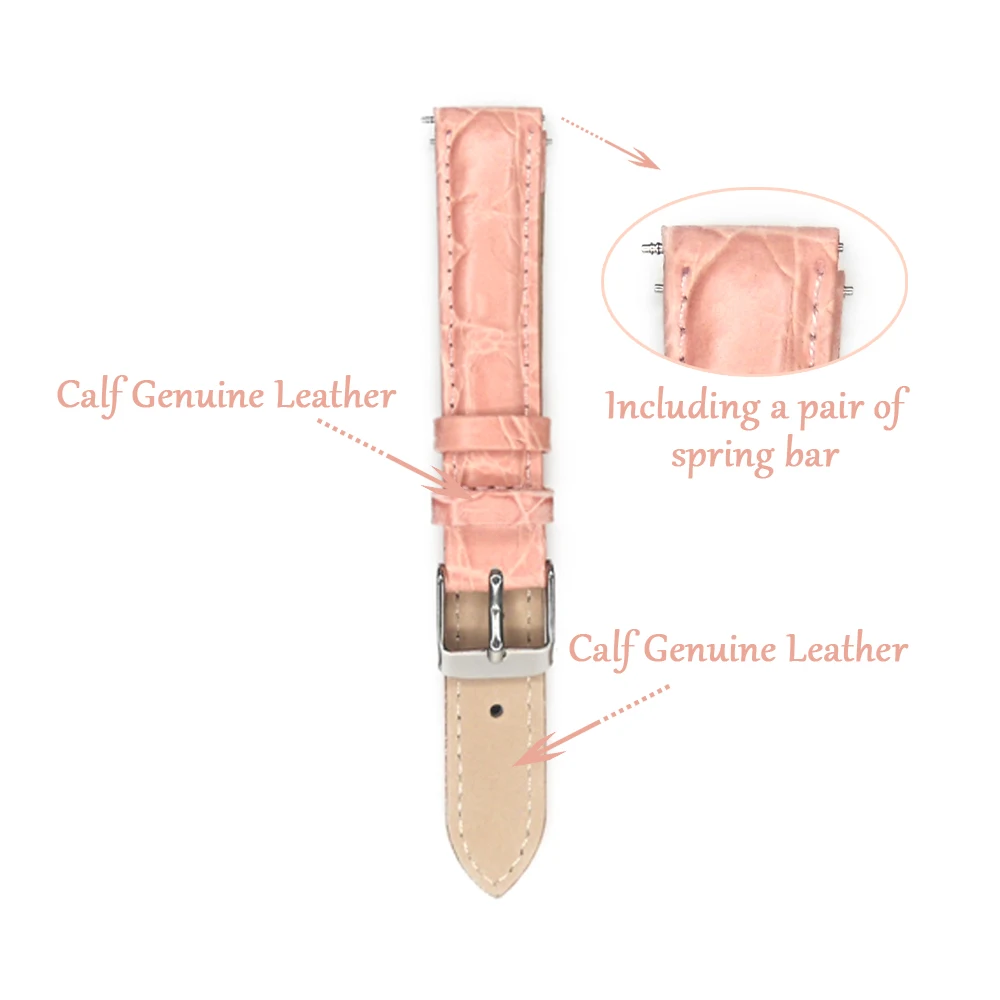 Ремешок кожаный для часов, браслет из натуральной кожи с пряжкой из нержавеющей стали, 12 мм 14 мм 16 мм 18 мм 20 мм, розовый бежевый синий