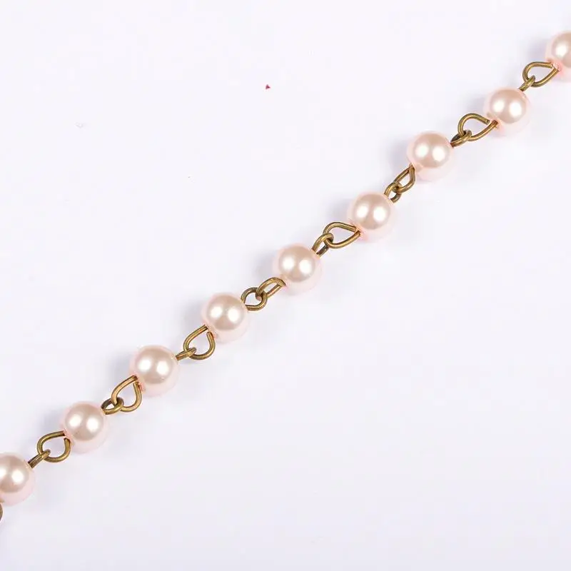 Круглые стеклянные жемчужные бусины 6 мм, цепочка из античной бронзы для изготовления браслетов, 39,3 дюйма, 5 нитейлот