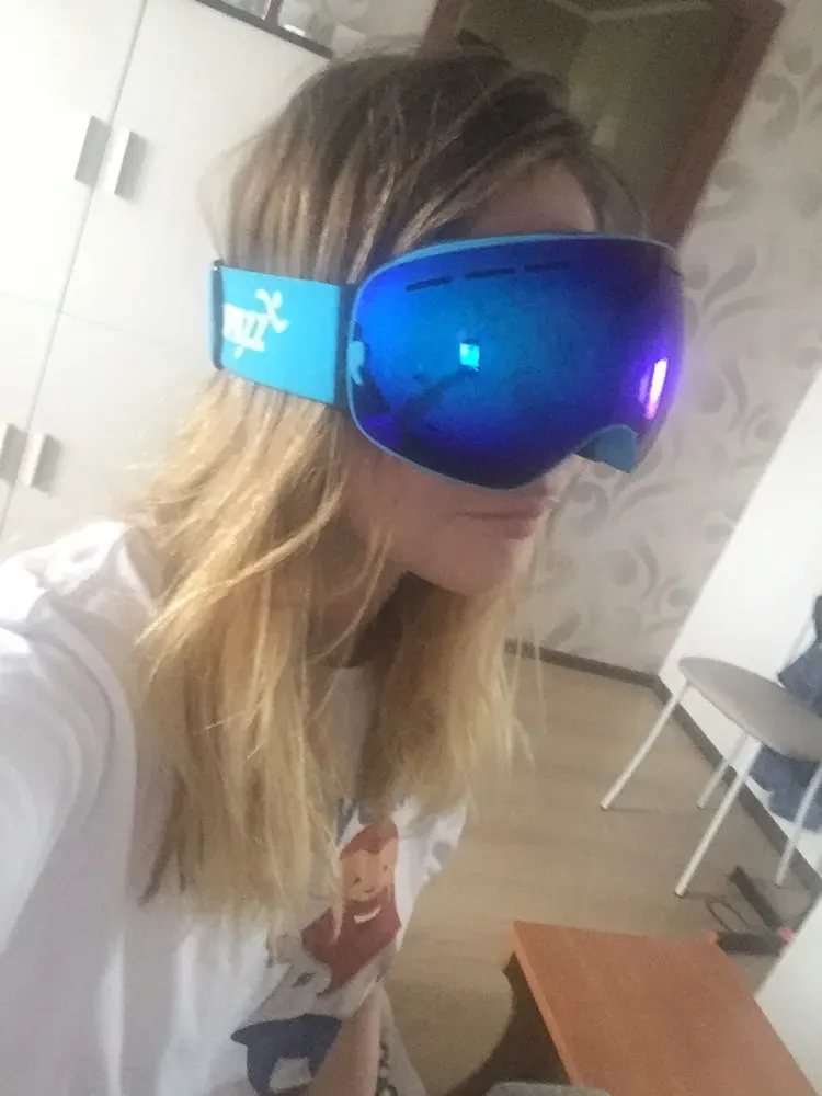 доставка супер быстрая. наверно 2 недели. пришла в картонной коробке. заказывала только очки. они пришли с тканевым мешочком. очки целые не поцарапанные. смотряться красиво. заказывала розовые 43% пропускают солнцеа. оттенок в линзах немного жёлтый. теперь минусы: 1) когда навожу на лампу бликует розовыми разводами. на фото видно. и это именно так бликует в очках. брала, чтобы с не солнечную погоду можно было кататься и в метель бы добавляло чёткости. эти очки боюсь с этим не справятся. теперь лучше понимаю, фразу про розовые очки. ) буду их носить для поднятия настроения. 2) они мне похоже малы. когда прикладываю к лицу -на скулах маска уже коснулась лица, а для того чтобы прикоснулось к переносице - нужно достаточно сильно надавить. не знаю, может и растянеться. материал маски - как плотная резина. или пластик вперемешку с резиной) может потому, что у меня высокие скулы, но у предыдущей моей маски небыло такой проблемы.(была самая простая)