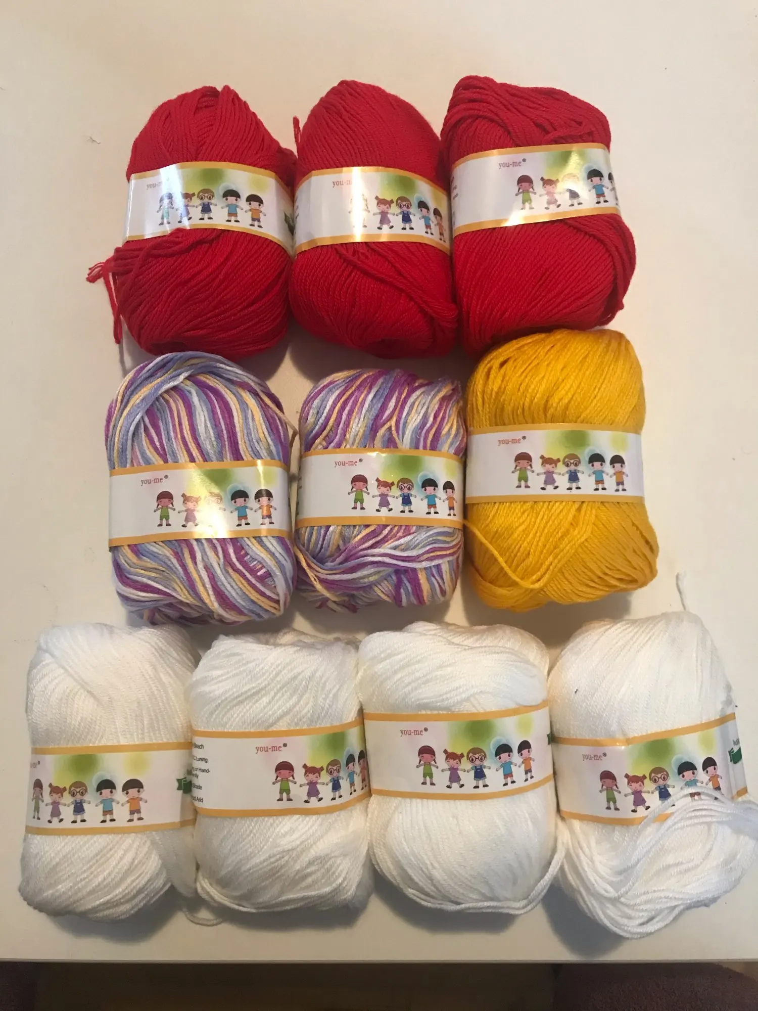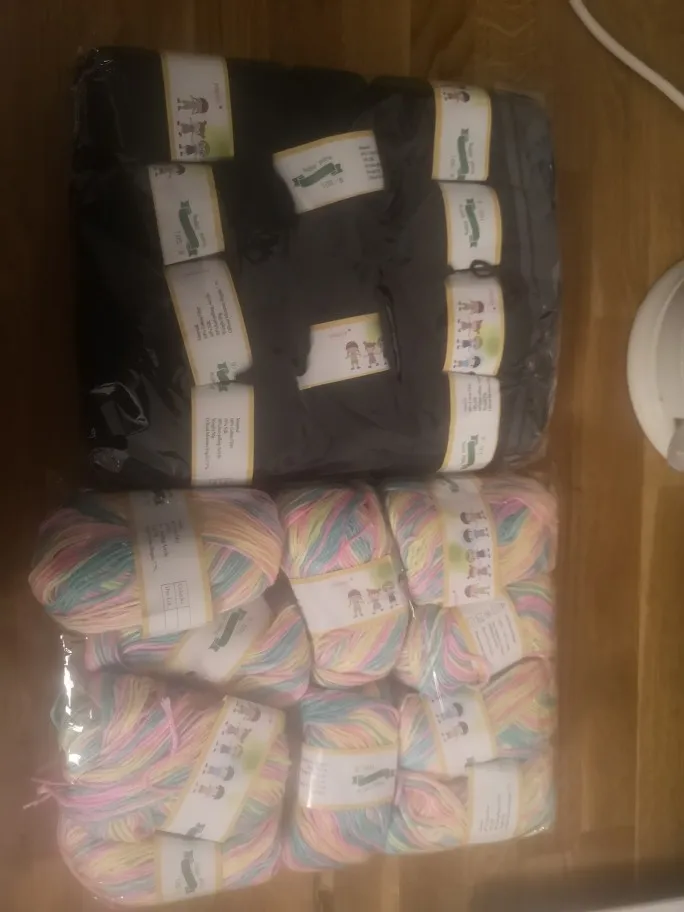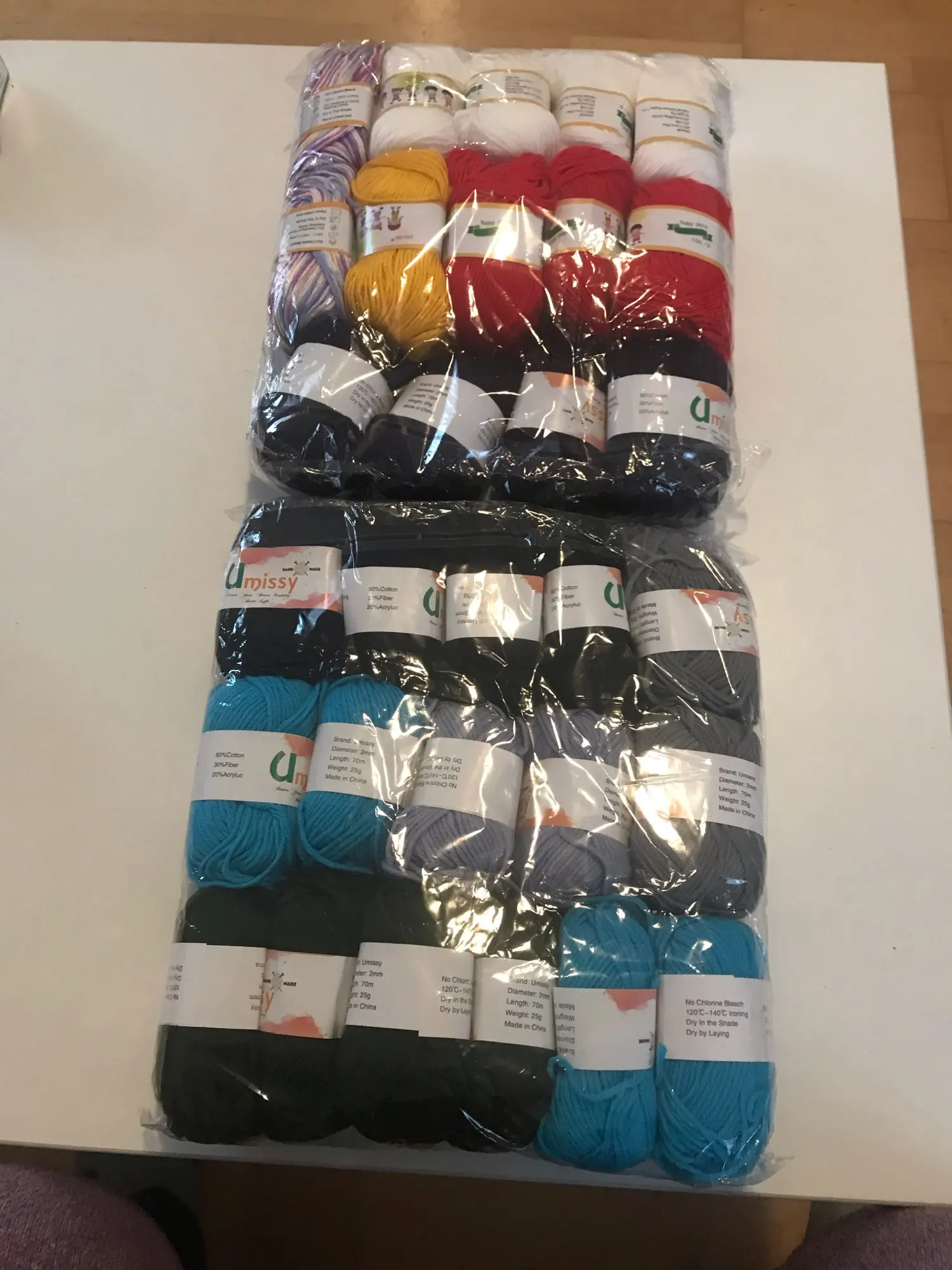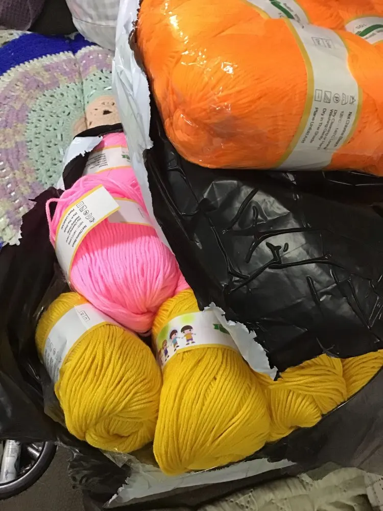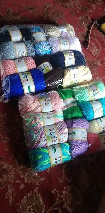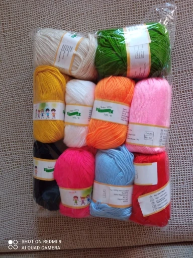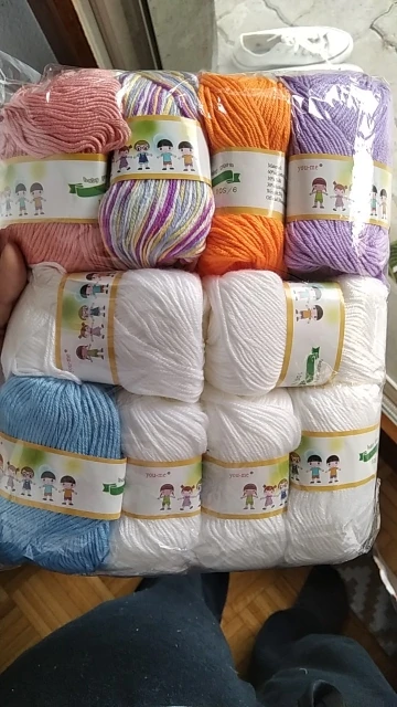Быстрая доставка. В комплекте четыре однотонных клубка и шесть пестрых. Я надеялась, что будет десять однотонных, ярких, сочных клубка. Но и эти классные! Накупила в разных магазинах около 100 клубков. Теперь думаю - нахера, когда я вязать буду? Во всём виноват ковид. Пока болела, столько всего накупила.