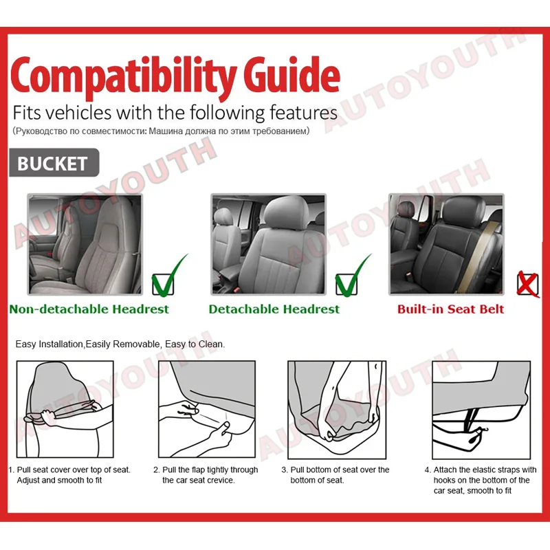 добавить стильный штрих к вашему салона с этими semi custom fit чехлы сидений из AUTOYOUTH Бренда. подходит для большинства ковшеобразные сиденья. чехлы сидений может продлить срок службы вашего автомобиля и держать свои места looking brand new and clean. эти чехлы подходят для большинства стандартных транспортных средств, включая седан, ВНЕДОРОЖНИК, грузовик, фургон и микроавтобус. сделано из высококачественных и прочных материалов, особенности инновационной ткани и дизайн, дополняет внешний вид старых или грязные места, Protects against распадается, пятна, увядать, грязь, и шерсть домашних животных, эти крышки защитить свой автомобиль от места от грязи, износа. Easy to install, не требует установки профессионального вам не нужно, чтобы удалить ваш оригинальный чехол; он скользит прямо на свое место.