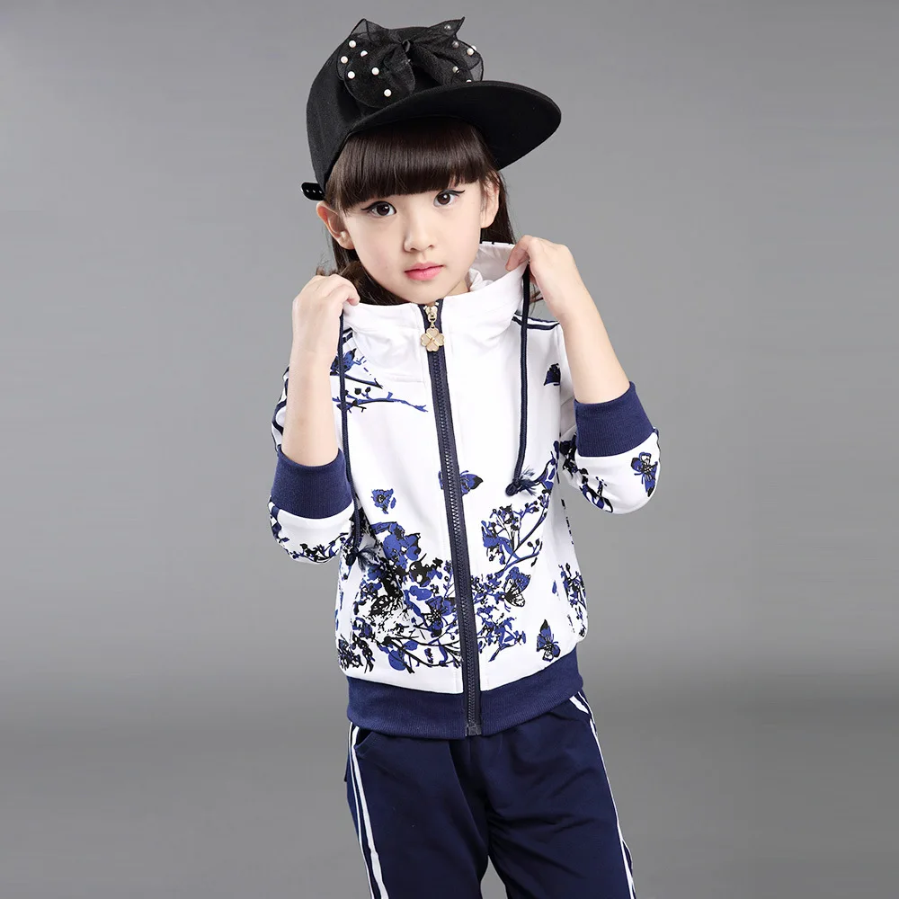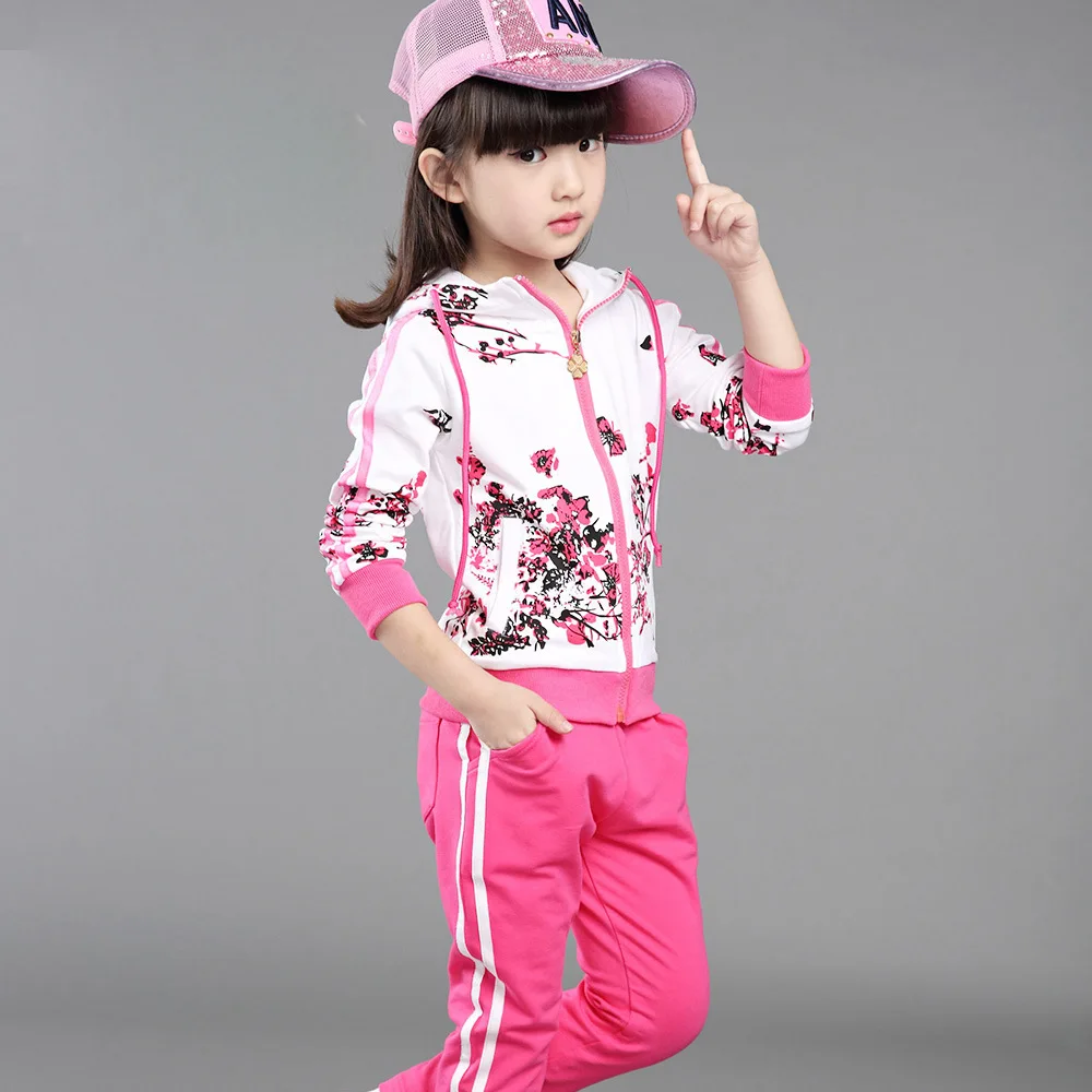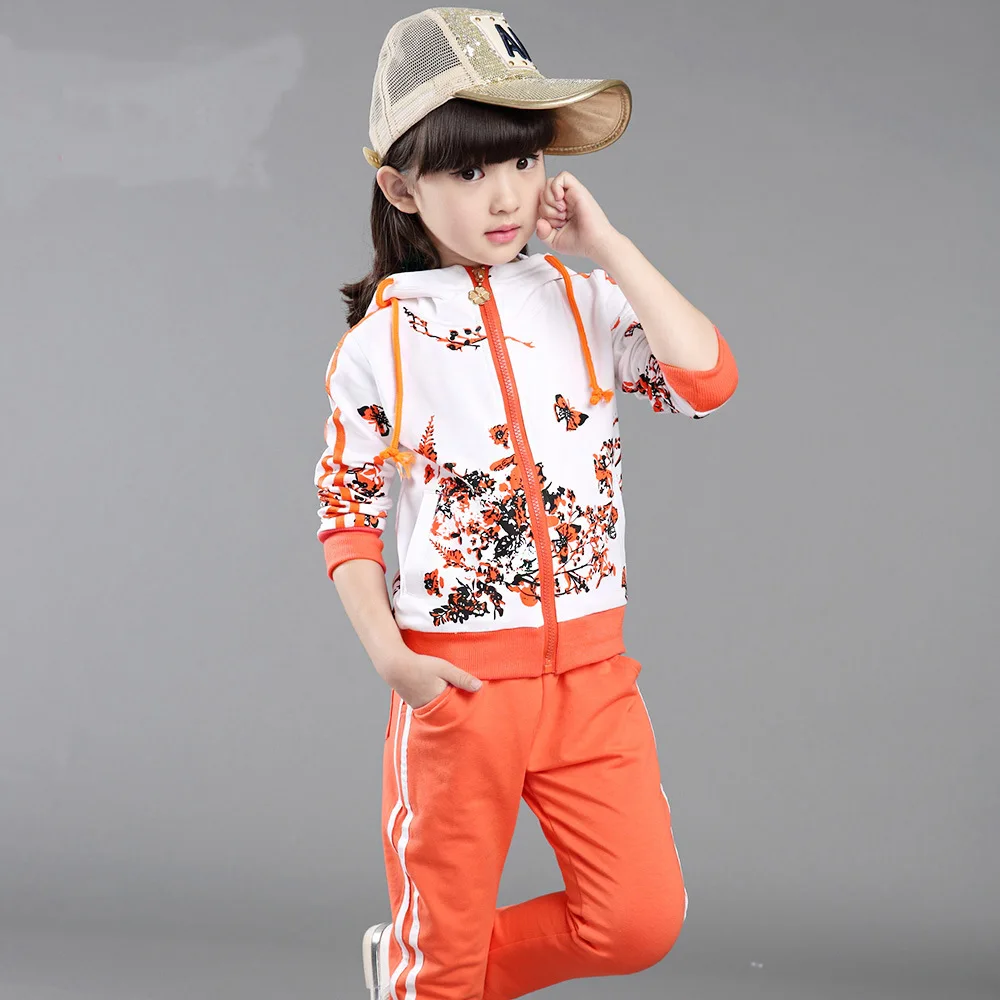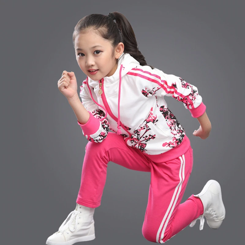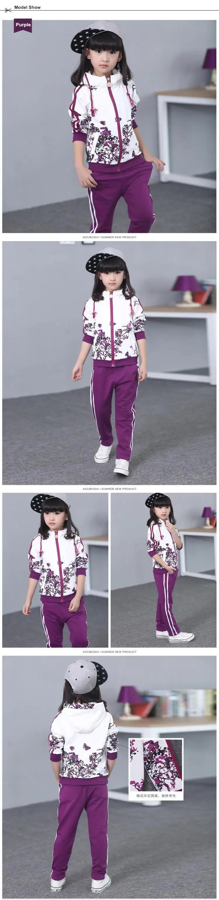 Детская одежда на весну и осень, одежда для подростков, девочек комплект Цветочный принт спортивный костюм; Одежда для детей; Одежда для девочек на осень одежда для маленьких детей; 4 Цвета От 3 до 15 лет
