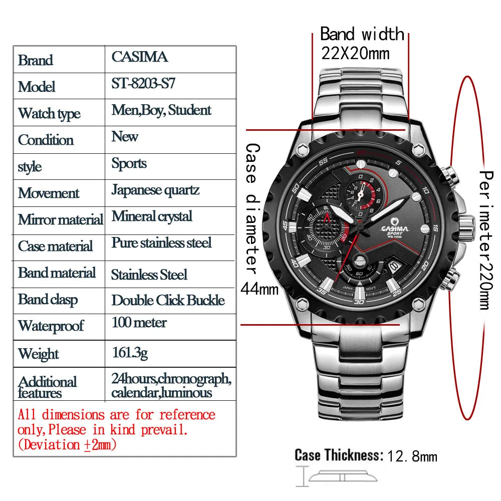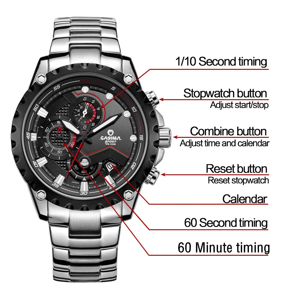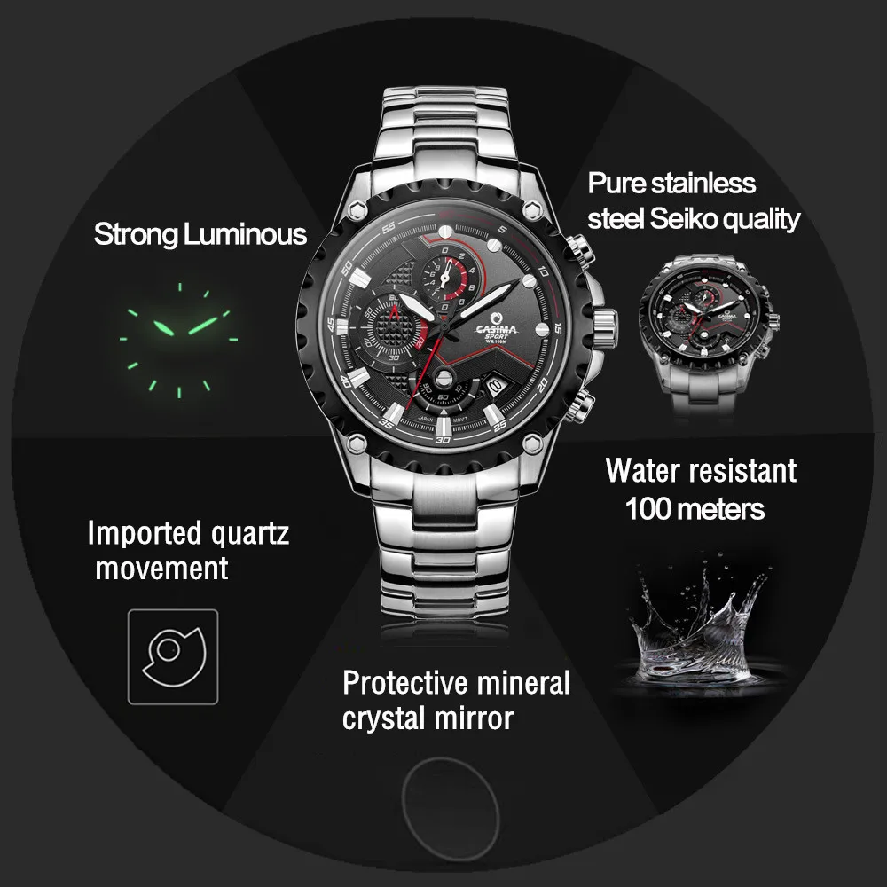 CASIMA Люксовый бренд моды часы мужчин случайные очарование световой спорт многофункциональный кварц wirst часы водонепроницаемые 100 м #8203 icon star icon star icon star icon star icon star