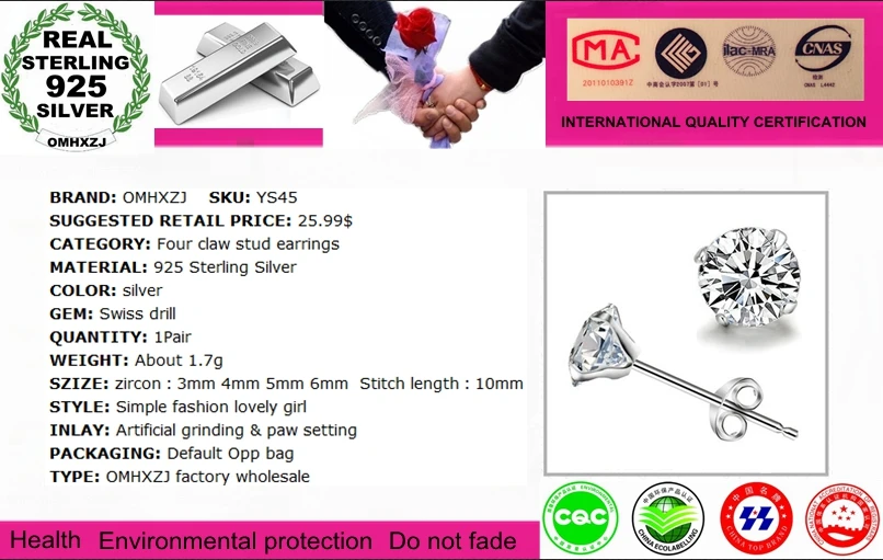 Ювелирные изделия OMH, оптовая продажа, серьги-гвоздики из стерлингового серебра 925 пробы с четырьмя кристаллами YS45 icon star icon star icon star icon star icon star