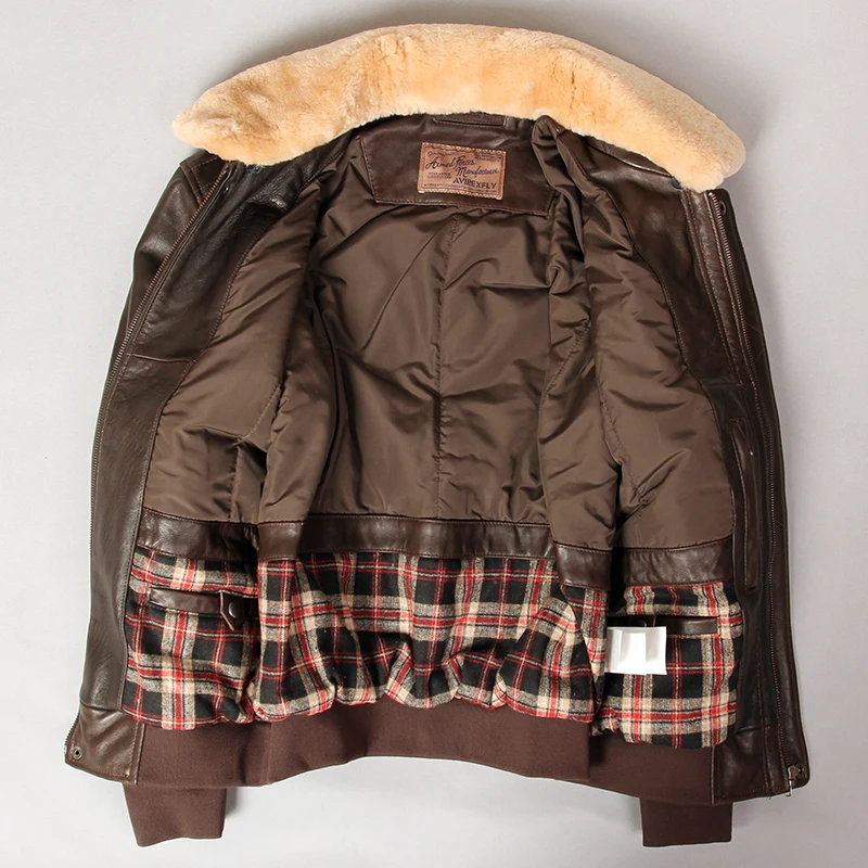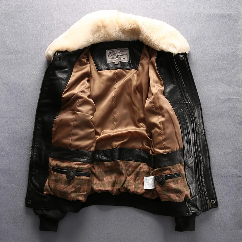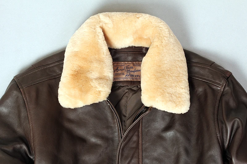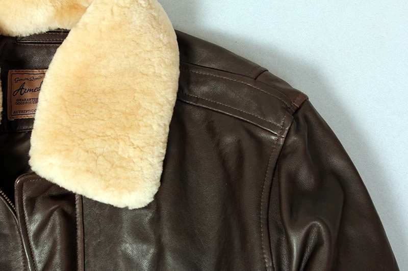 2019 Военная летная куртка ВВС с меховым воротником мужская зимняя куртка из натуральной кожи темно-коричневая дубленка пилот Бомбер куртка