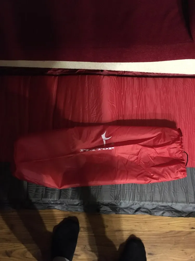 Одна из самых быстрых доставок, 2 недели, до двери, как я люблю))) Трек не отслеживается. Коврик надувается, имеет застежки, мешок для хранения. Претензий к продавцу и товару нет. Брал на распродаже 11:11 за 2200. Рекомендую, за эту цену по длине из брендовых самый лучший + застежки.