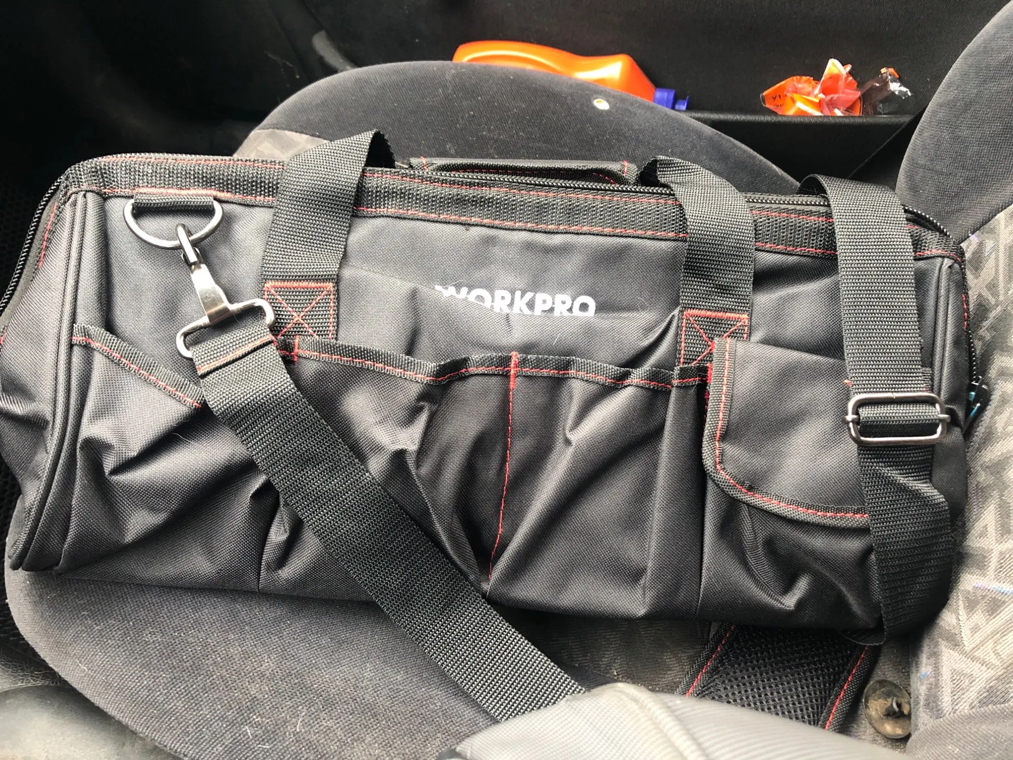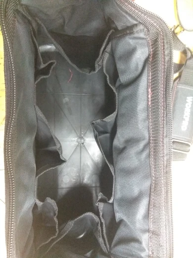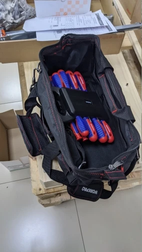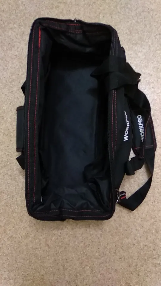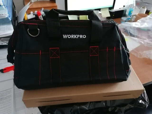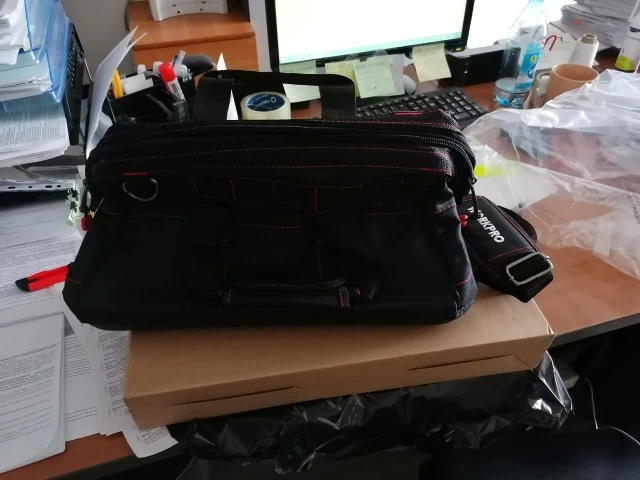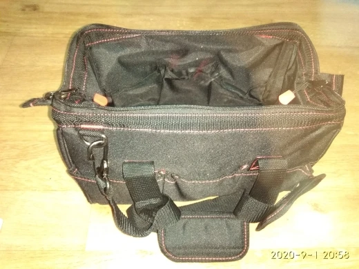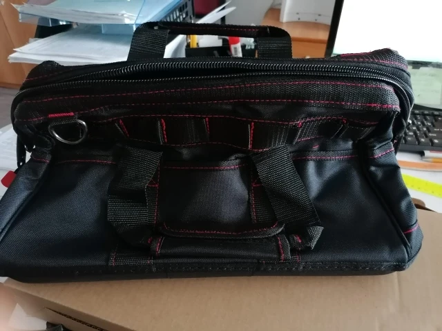 Взял сумочку для обедов, надёжная, качественная. Для инструмента: влезть шуруповёрт, запасная батарея и зарядник. Много мелких кармашков.