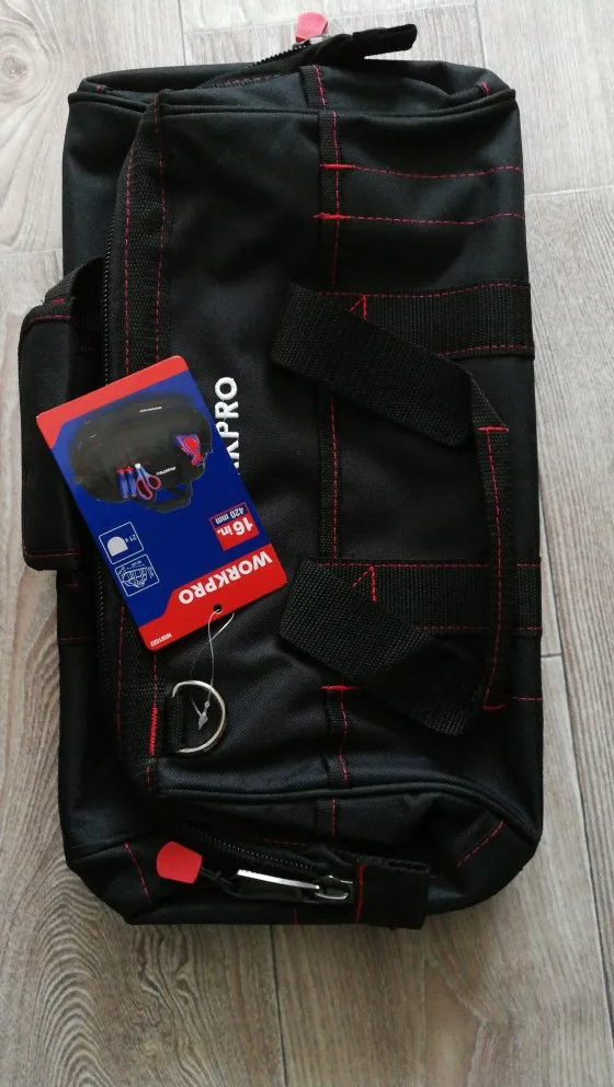 сумка не плохая, но дорого, брал за 1248₽. влезла болгарка под 150 диск и перфоратор, шуруповёрт ещё влезет и мелочи насыпать можно ещё. в принципе не плохо, но цена ей не больше 1000₽. через пять дней после заказа принес курьер домой.