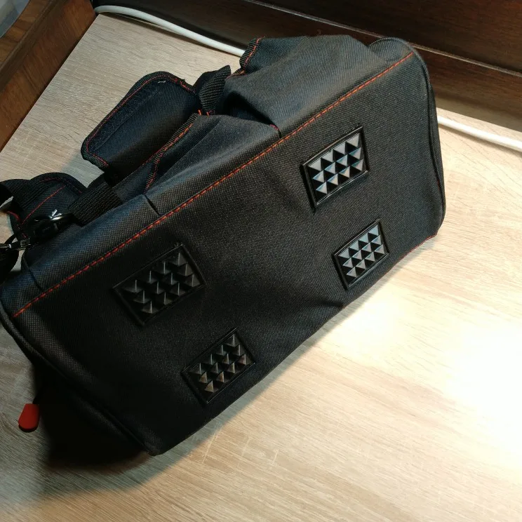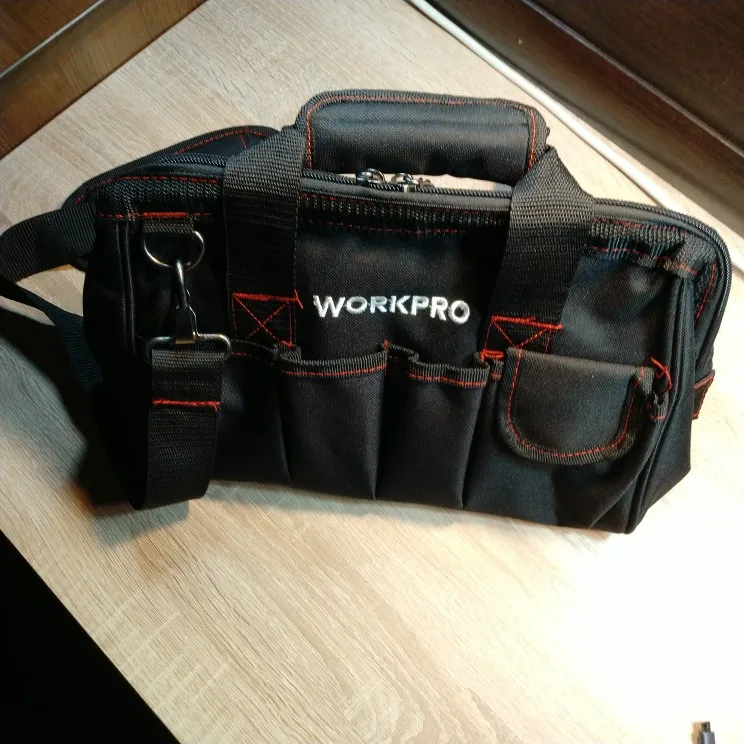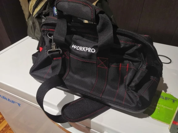 Заказал им доставкой из РФ. Сумка пошита хорошо, на дне есть плотное дно. Внутри и снаружи много кармашков для инструмента.