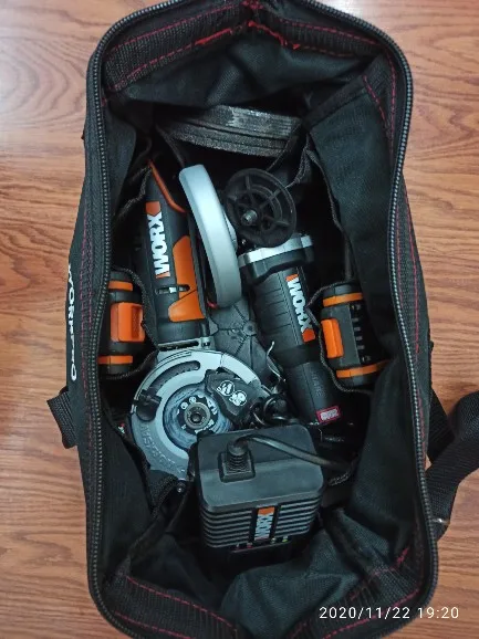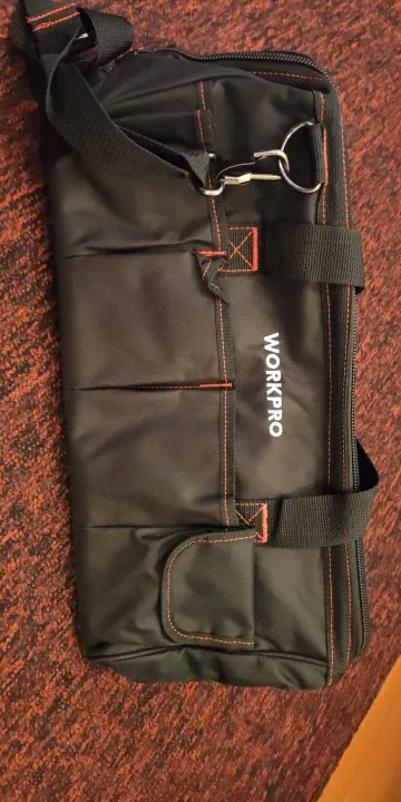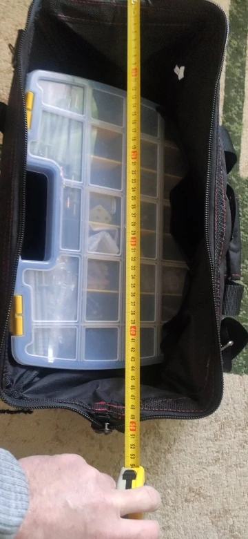 Отличная сумка, не сильно большая и не маленькая. Как раз для переноски болгарки, среднего шуруповерта и зарядника. Продавец оперативно отправил товар, за что ему спасибо. Рекомендую.