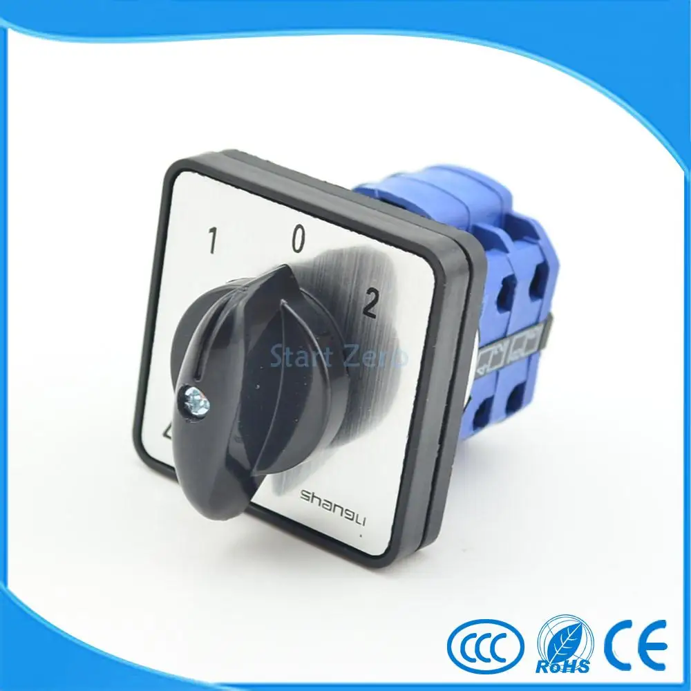 Электрический 3-позиционный поворотный кулачковый переключатель, 1-0-2, 8 клемм, 660 В, 20 А, SZW26-20