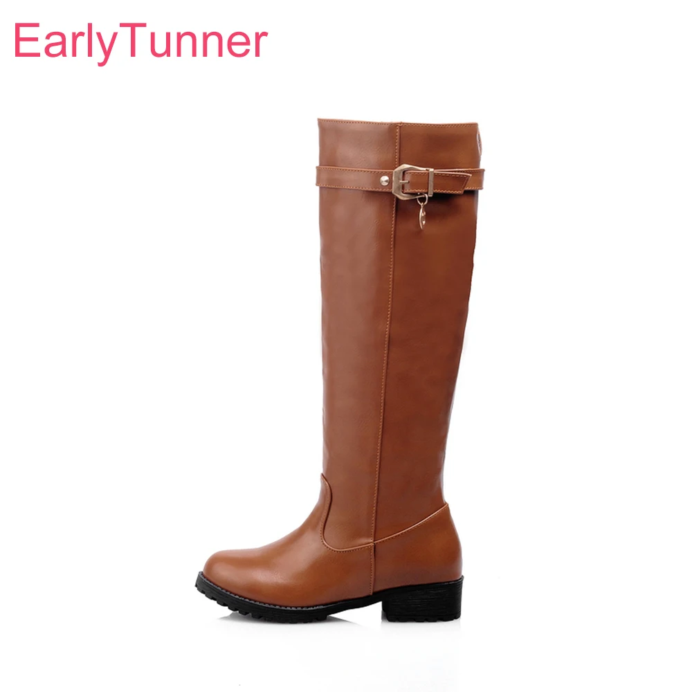 Распродажа, брендовая новая зимняя модная Желтая Женская обувь до колена для верховой езды, желтая женская повседневная обувь на низком каблуке EHG55, большой размер 10 43