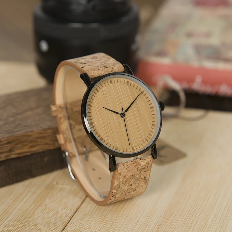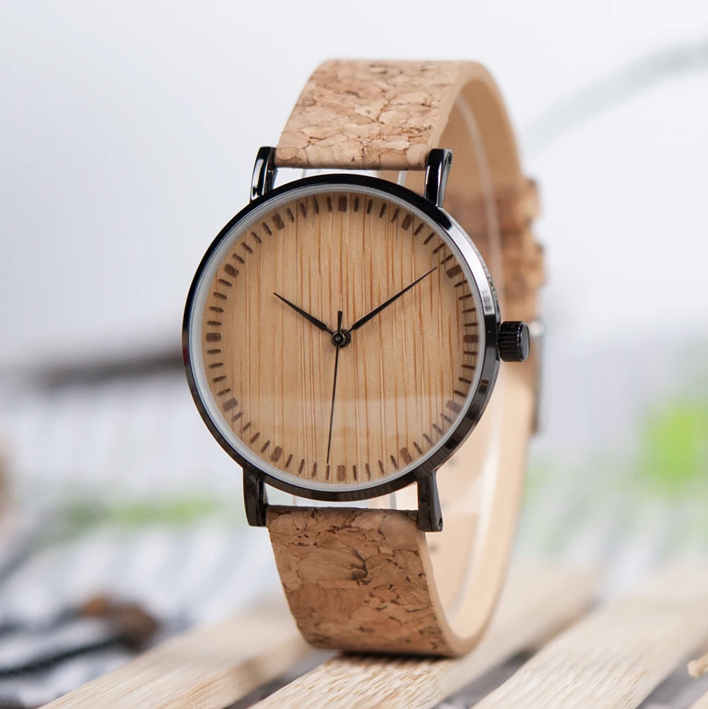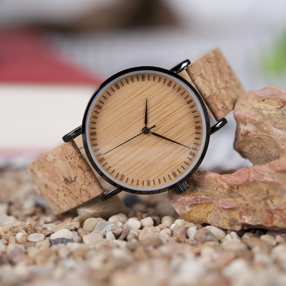 Мужские часы BOBO BIRD, мужские наручные часы из бамбука, кварцевые часы с бамбуковым циферблатом и браслетом из натуральной пробки, женские часы
