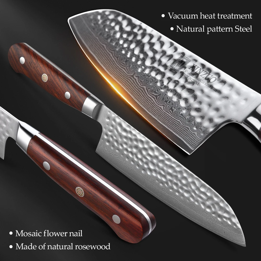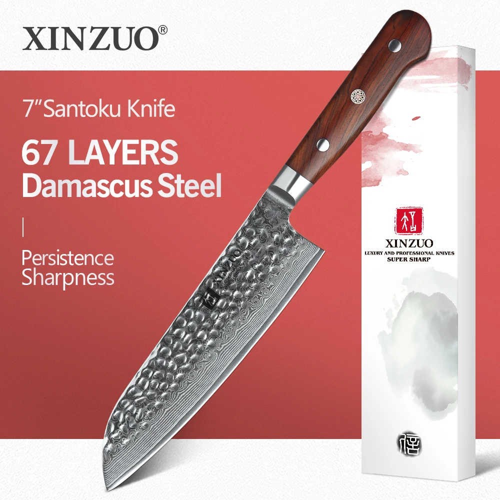 Нож сантоку XINZUO 7 дюймов, шеф-повар из дамасской кованой стали, 67 слоев, рукоятка из палисандра, в японском стиле
