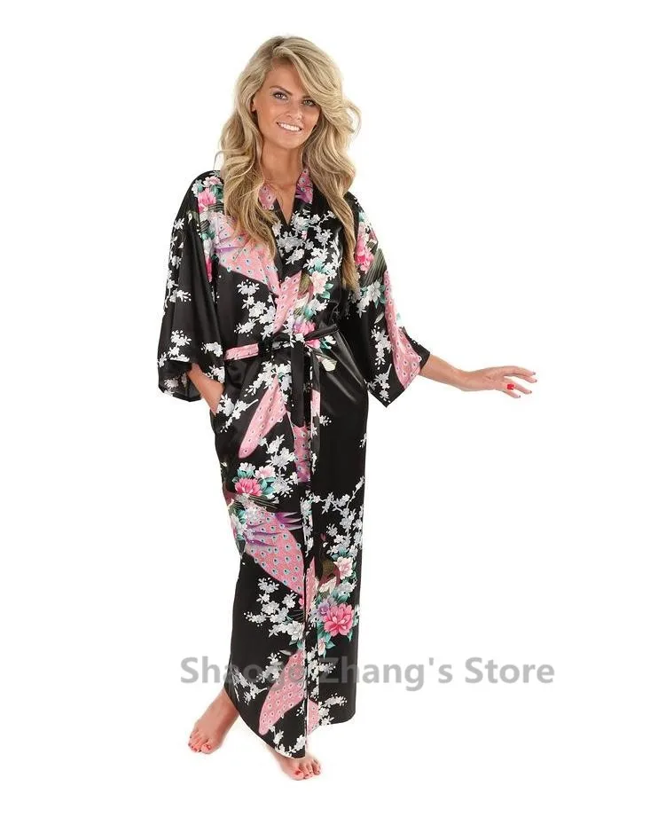 Женское длинное шелковое кимоно, с цветочным принтом, размеры S, M, L, XL, XXL, XXXL, A-044