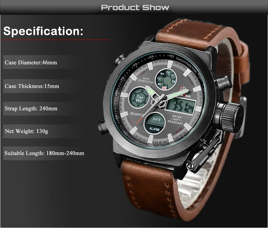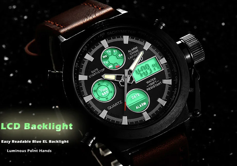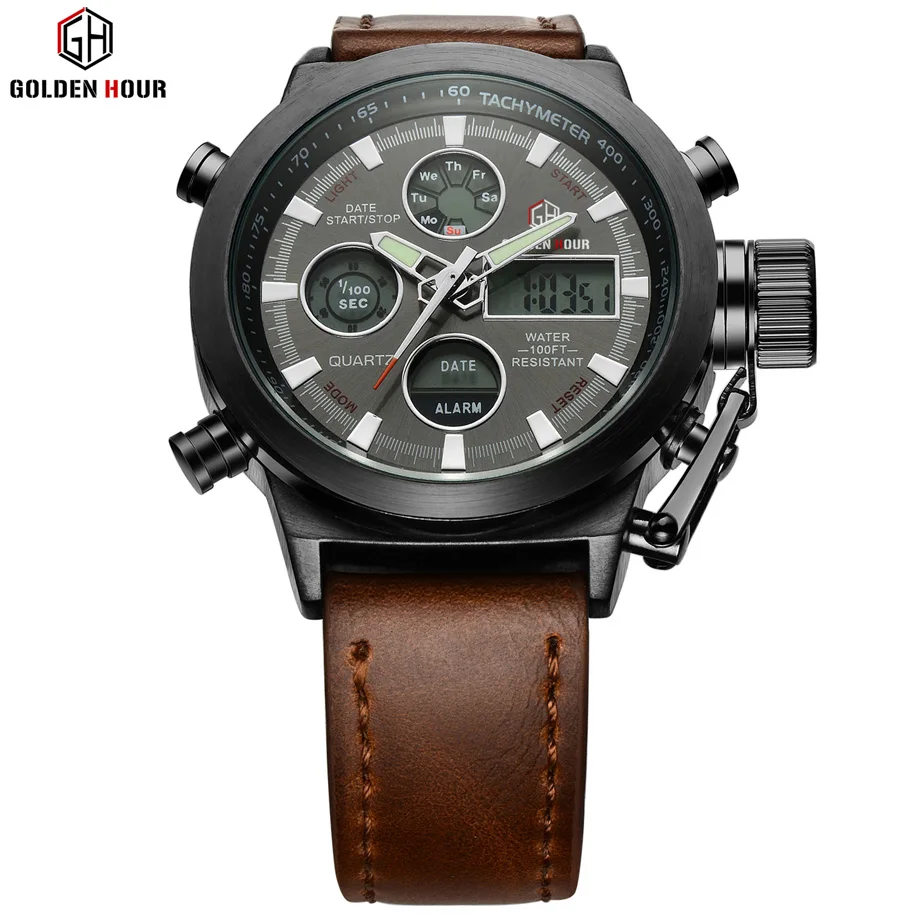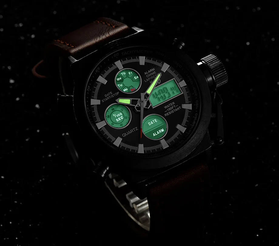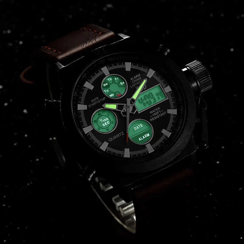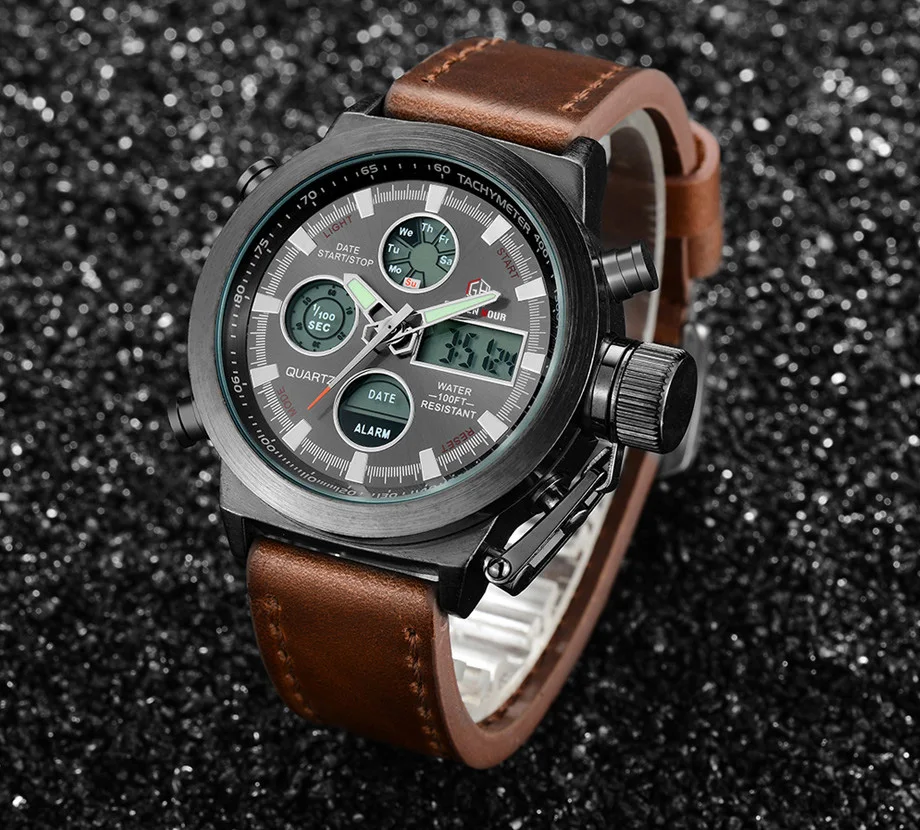 Часы наручные мужские кварцевые аналоговые со светодиодный ным дисплеем
