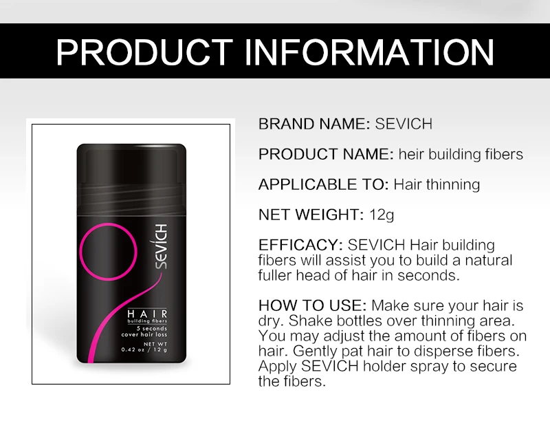 Sevich bottle 12 г волокна для наращивания волос кератин для выпадения волос мгновенное Утолщение Волокон для укладки волос порошок 10 цветов для увеличения волос