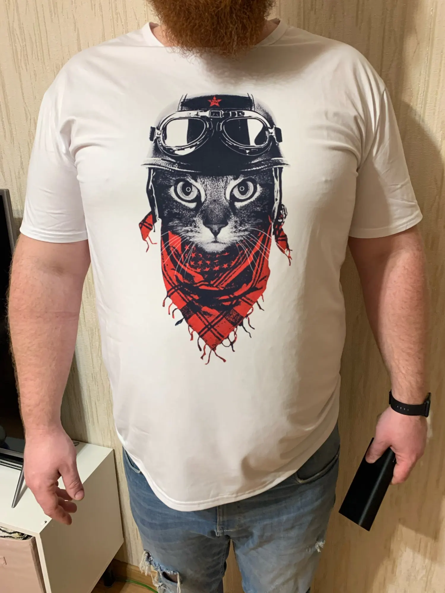 Футболка мужская с принтом кота, Повседневная тенниска с коротким р...