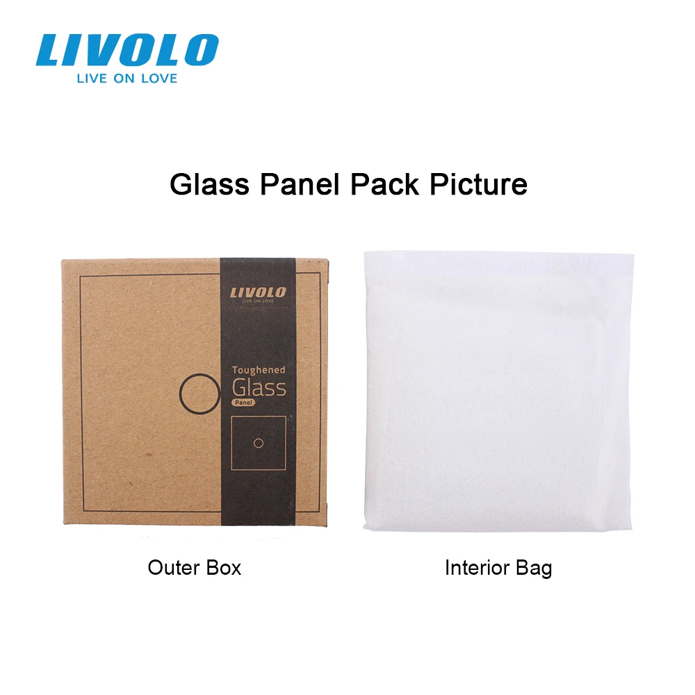 К выключателям стекло подходит. Названия на стекле "Livolo" отсутствует. Товар соответствует качеству.