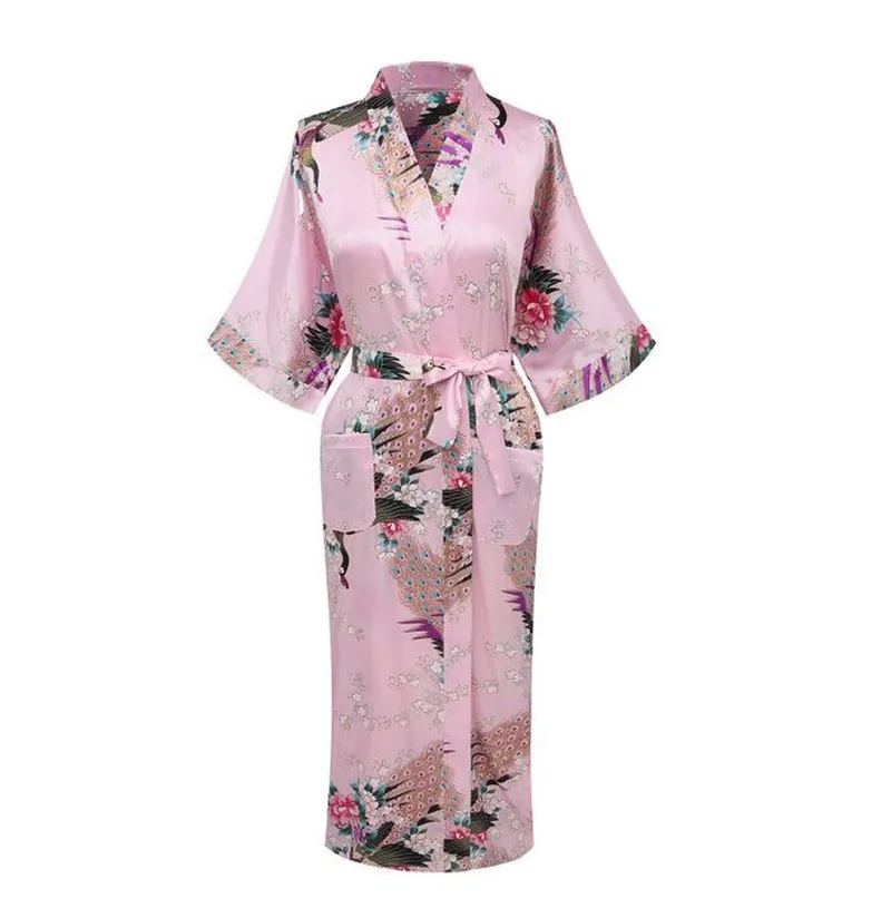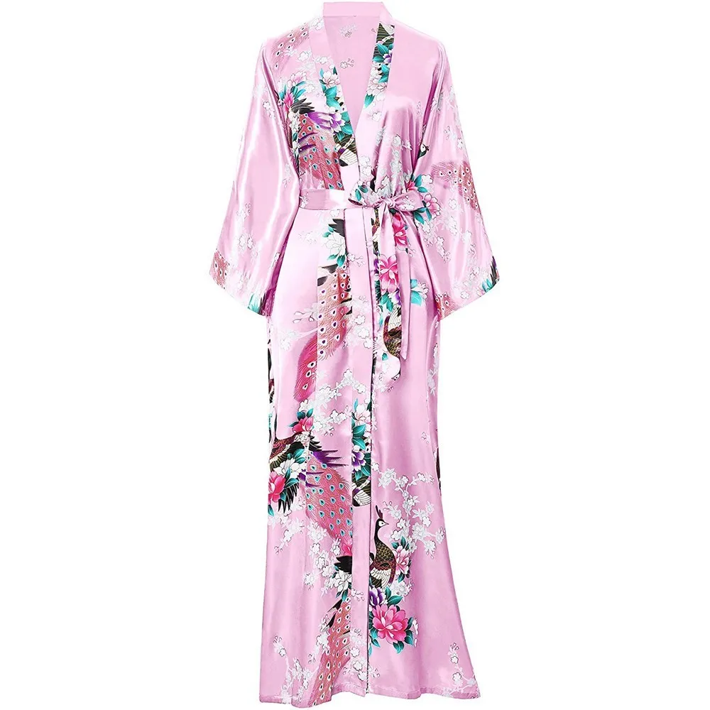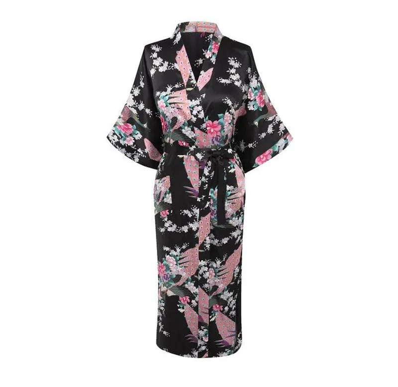Халат женский шелковый длинный, в китайском стиле, размера плюс S, M, L, XL, XXL, XXXL, A-030