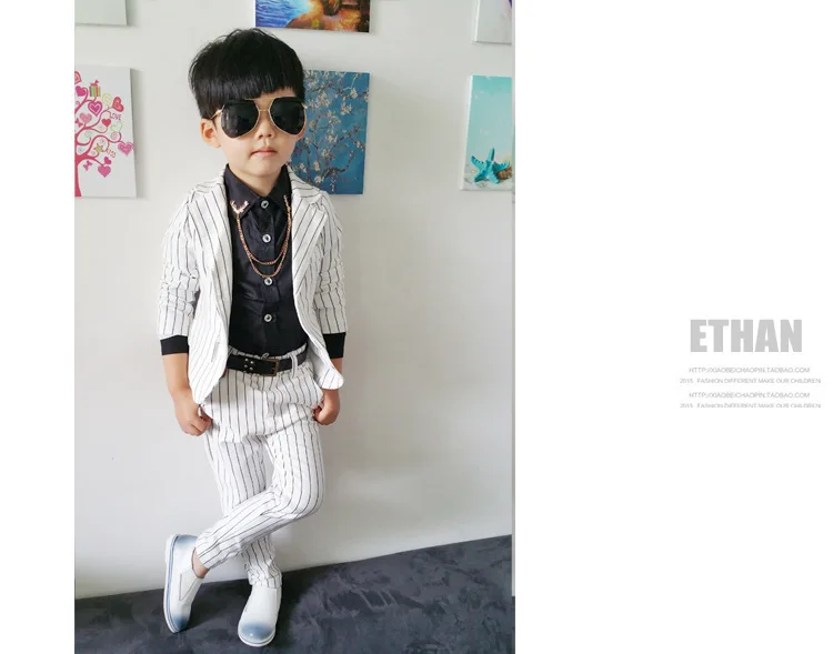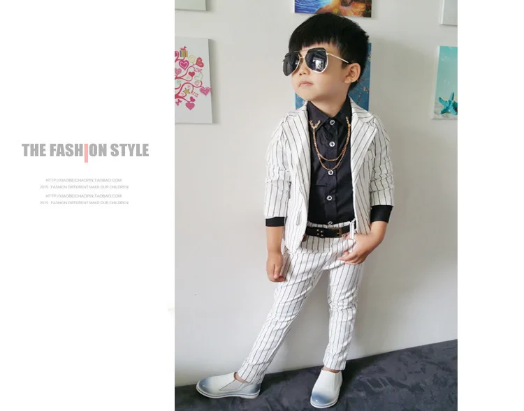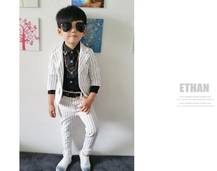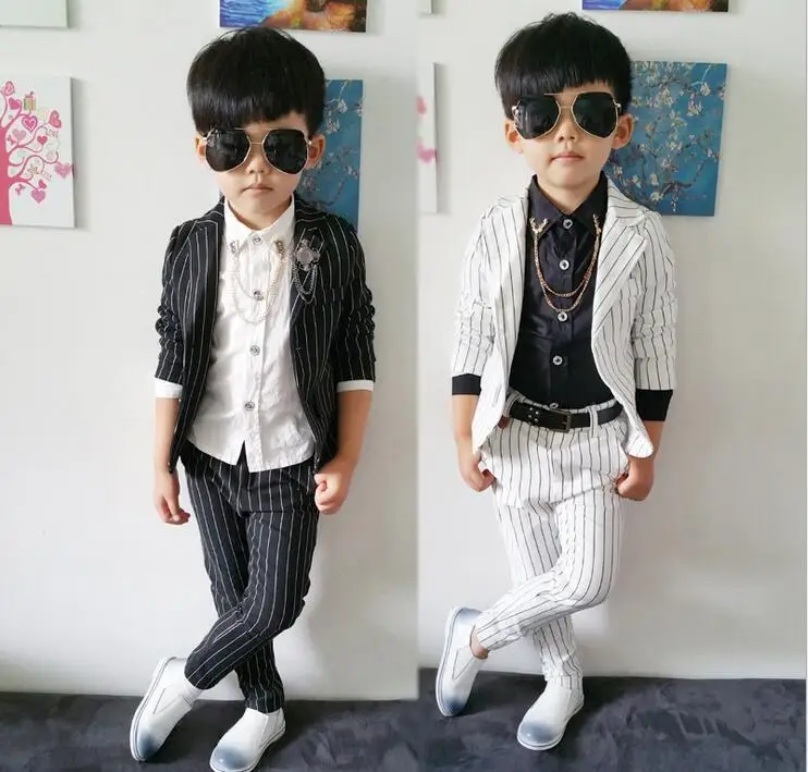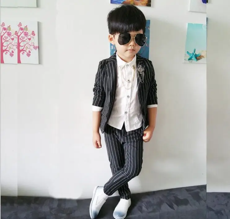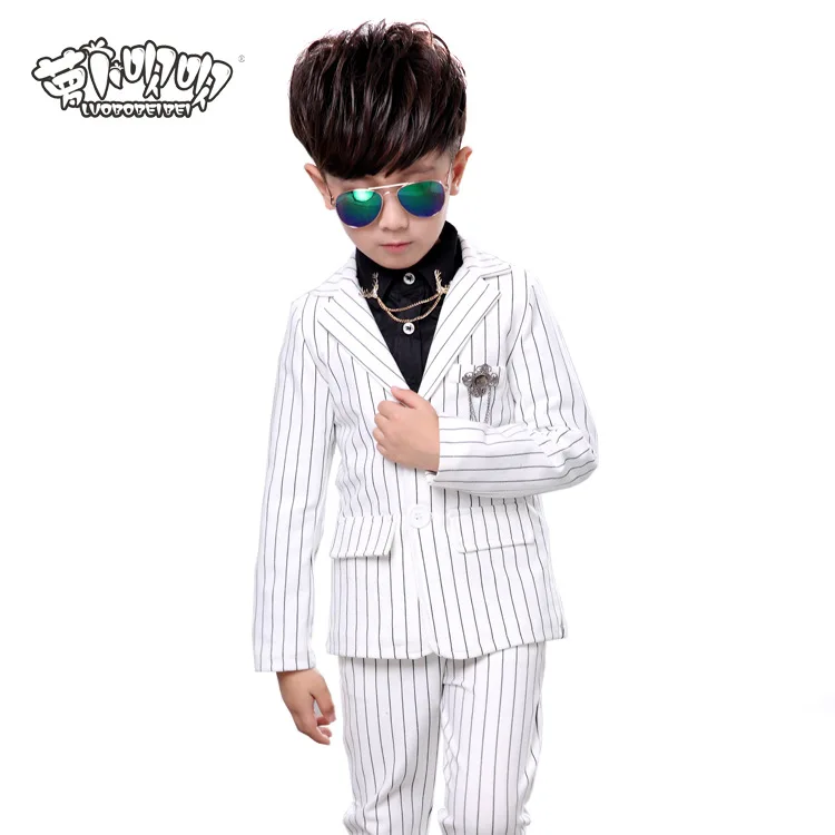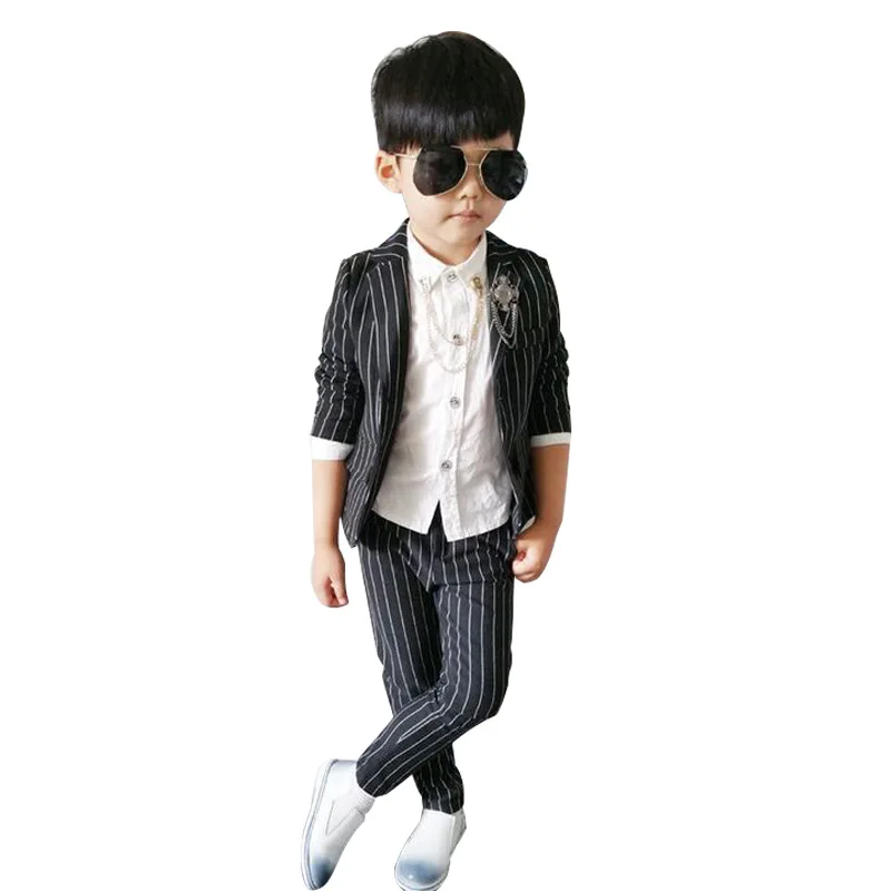Костюм в полоску для детские пиджаки (куртка, рубашка, штаны, брошь), костюм для выпускного бала для мальчиков-подростков, детские костюмы, черныйбелый