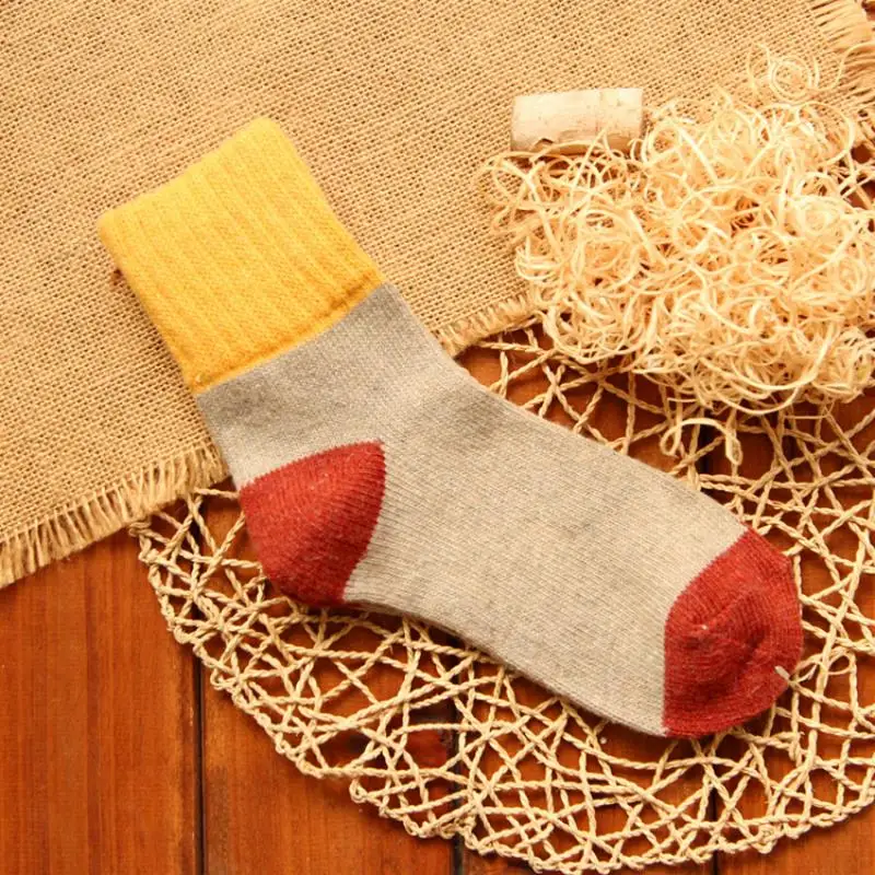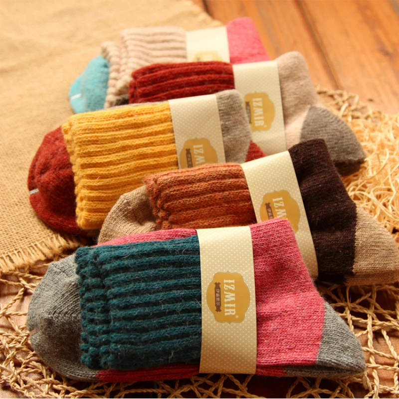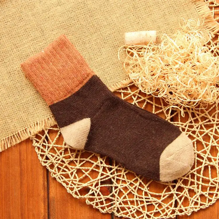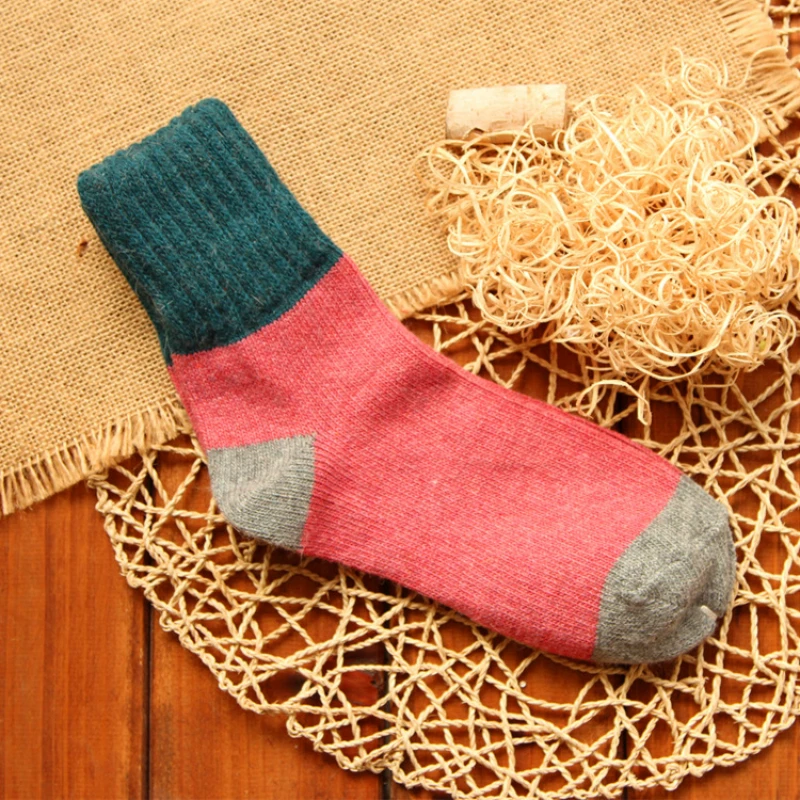 Женские теплые шерстяные носки в стиле пэчворк, красные, серые