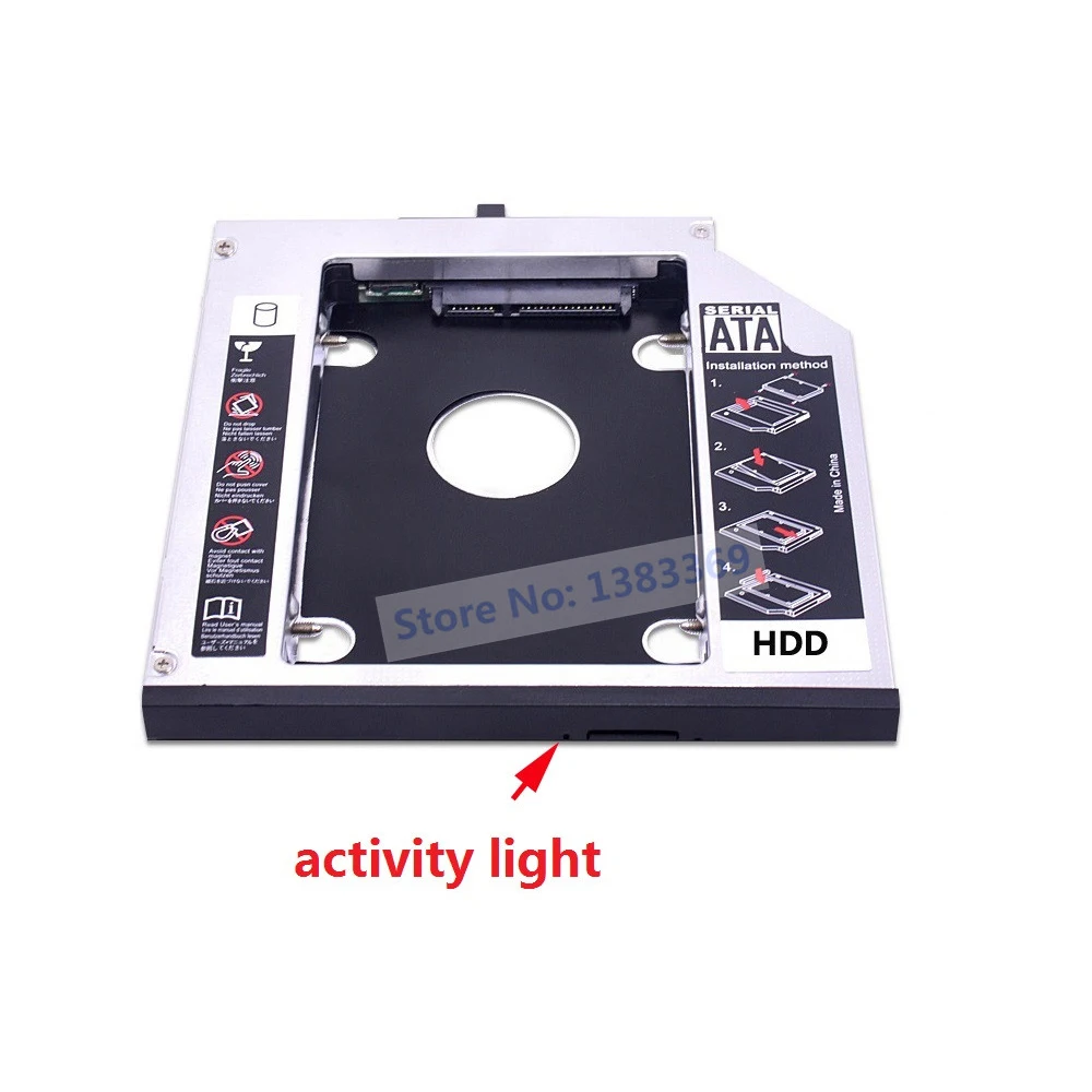 Описание: 2-й жесткий диск Optical bay Caddy / Adapter обеспечивает вам максимальную гибкость хранения данных. Со вторым HDD/SSD в вашем ноутбуке для замены оптического диска, вы можете быстро создавать резервные копии важных приложений и критических данных (Просто удалите CD-ROM диск и поместите Caddy (с дополнительным жестким диском) на его место;