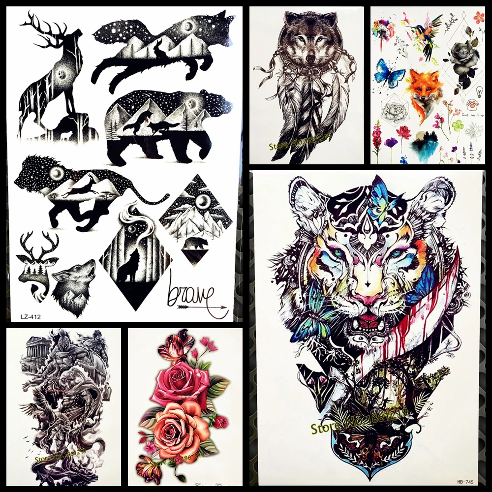 Временная татуировка 21x15 см, креативная наклейка со львом, мужска...
