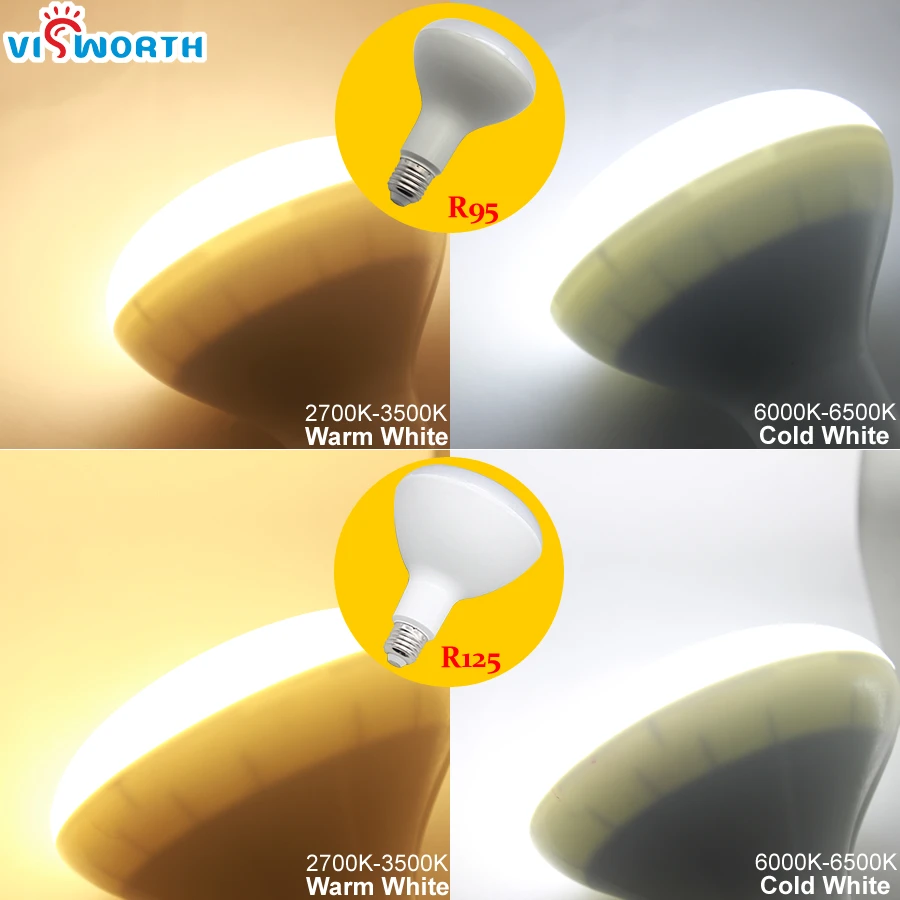 VisWorthHigh яркая 12 Вт 15 Вт 20 Вт R95 R125 Светодиодная лампа E27 Базовая Светодиодная лампа с длинным горлом AC 110 В 220 в 230 в 240 в теплый холодный белый прожектор