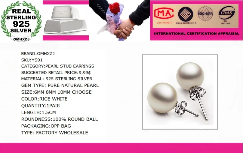 OMH оптовая продажа, модные ювелирные изделия, жемчуг, серебро 925 пробы, серьги-гвоздики YS01 icon star icon star icon star icon star icon star