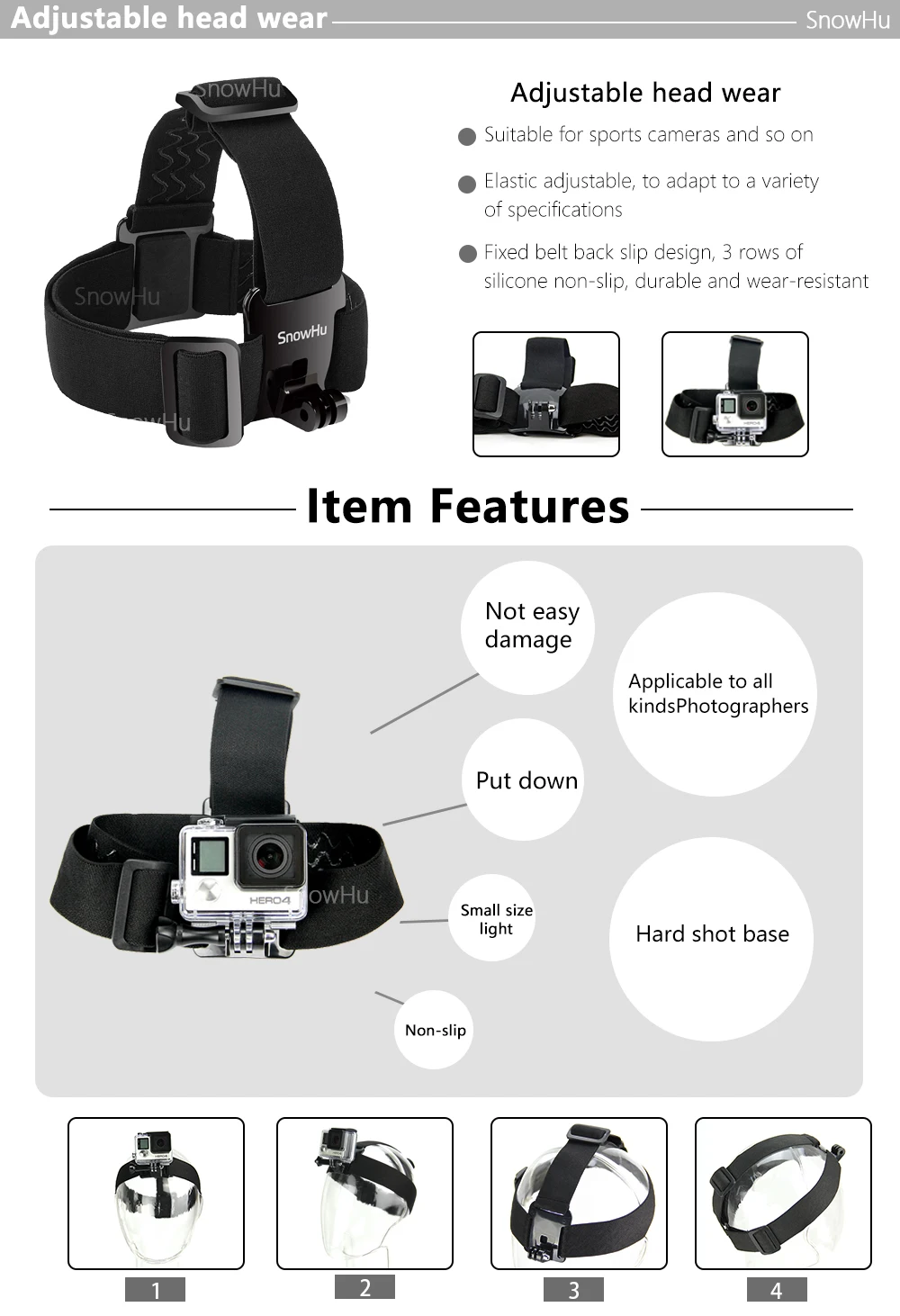 Комплект аксессуаров SnowHu для Gopro 10, Трипод, монопод, нагрудный ремень, крепление на голову, ремешок для Go pro Hero 10, 9, 8, 7, 6, SJCAM Yi, Спортивная камера GS21