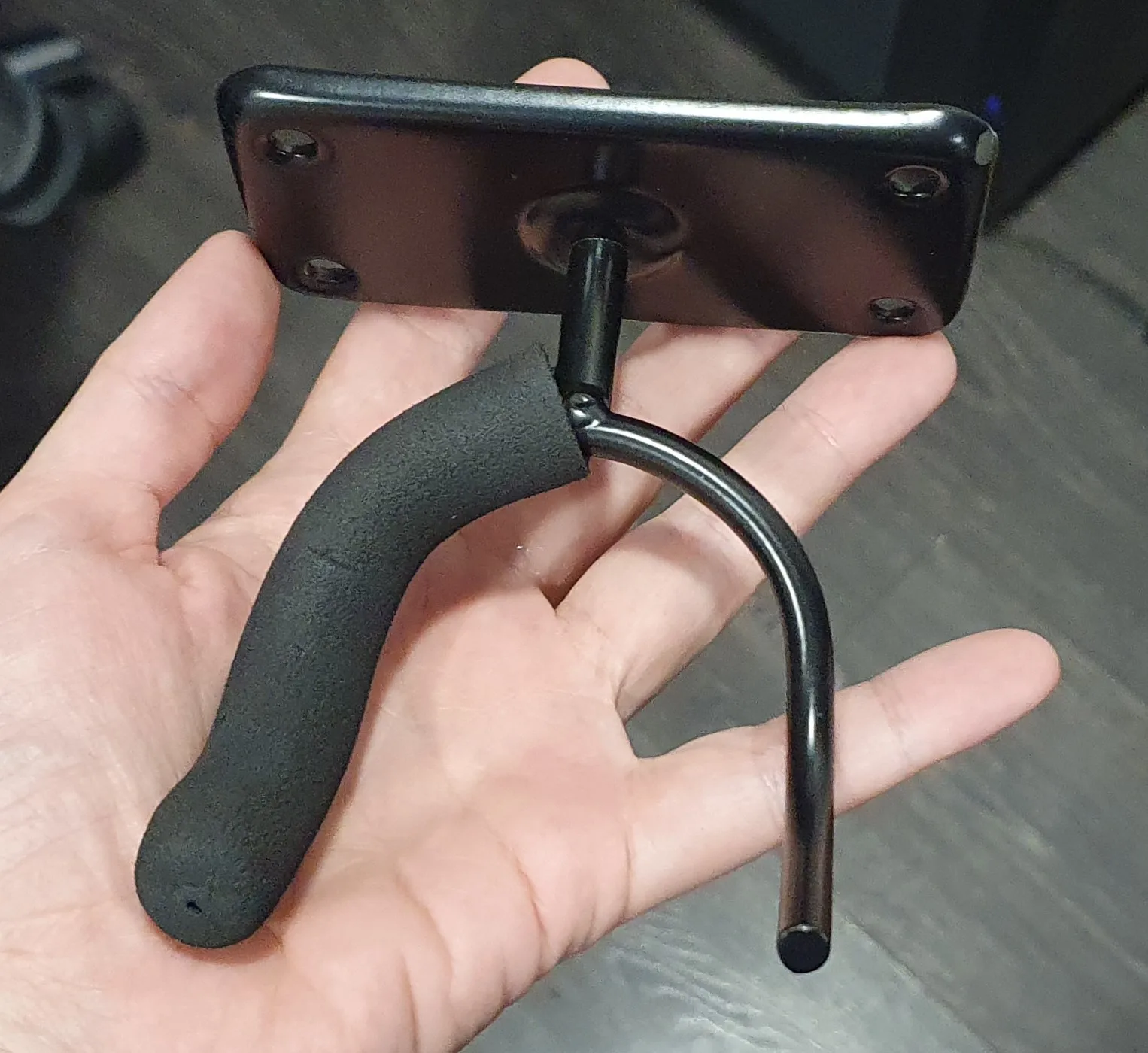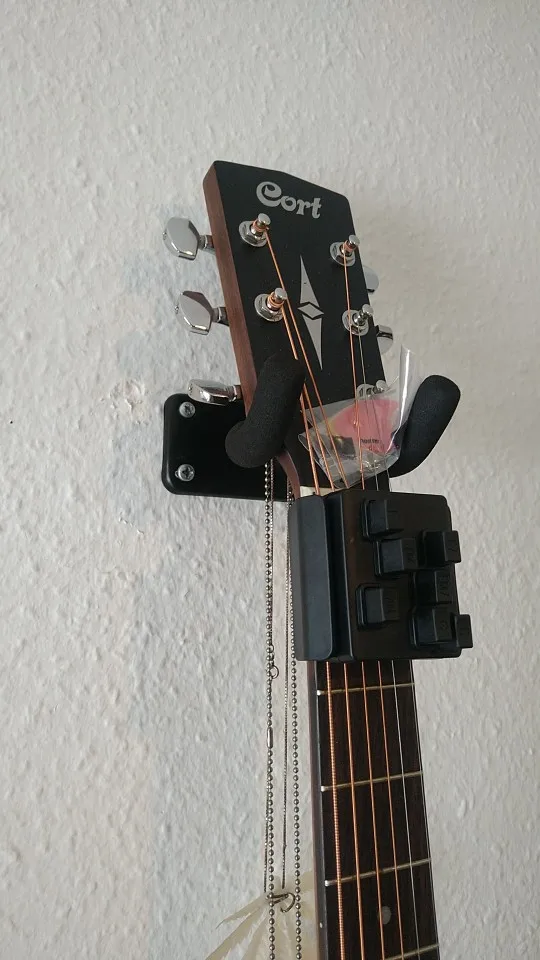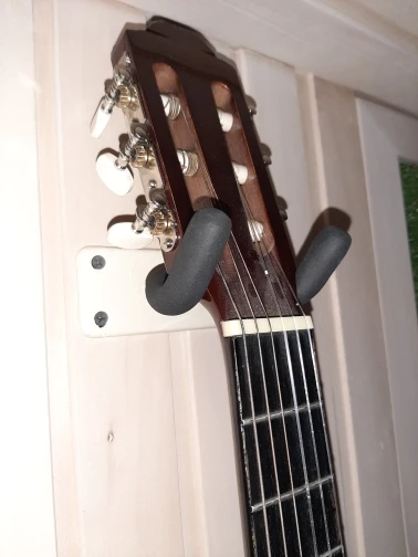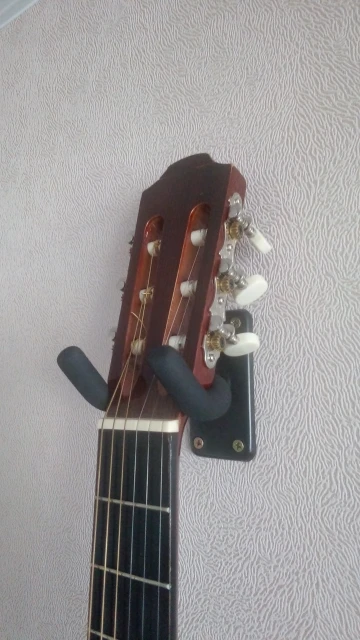 Отличный крюк для гитары.Конкретно покупал для электро гитары, подошла без проблем! Сделана из металла,с поролоновыми штанами для мягкости! Крюк крутиться туго, так как и нужно. Перо гитары имеет диагональную форму, для этого и нужно что бы крюк прокручивался! Продукт рекомендую однозначно! Шло меньше месяца!
