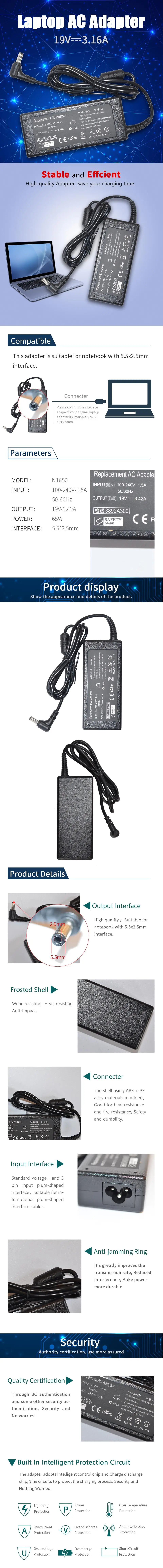 Замена для Lenovo ForAsus ForToshiba ba19v 3.42A 5,5*2,5 мм 65 Вт k...