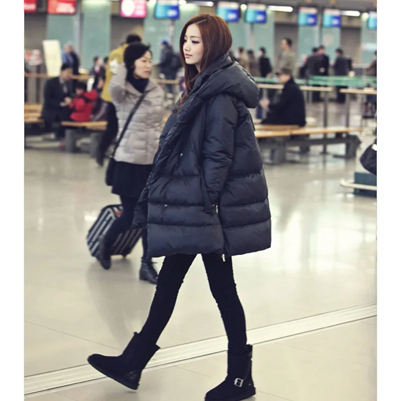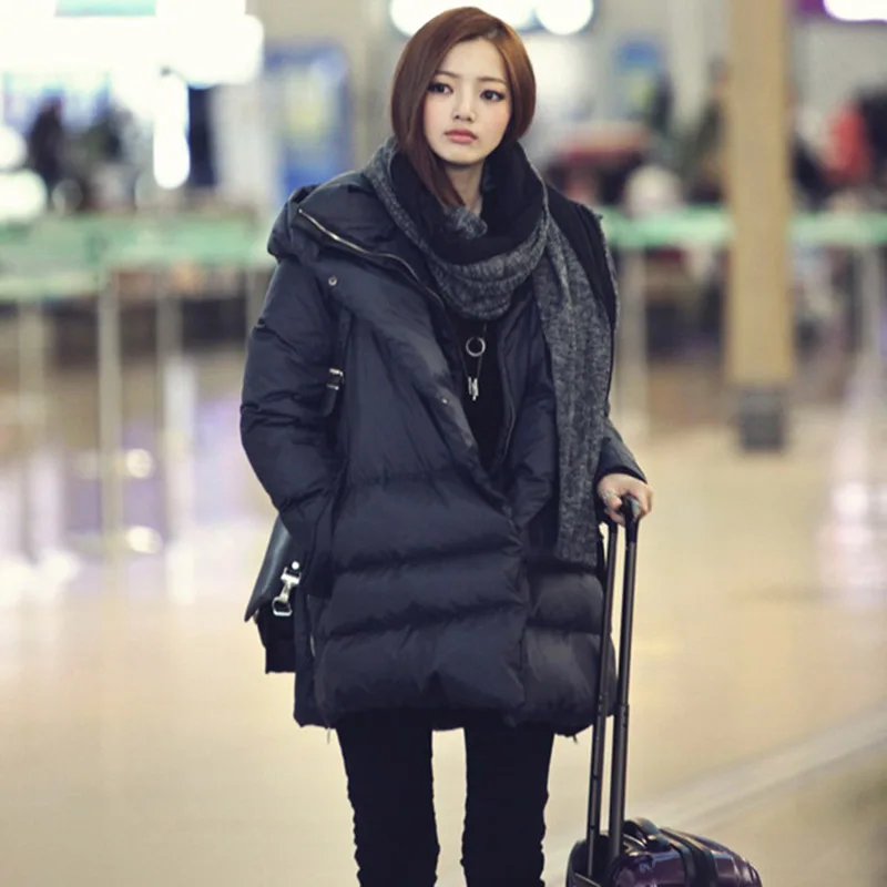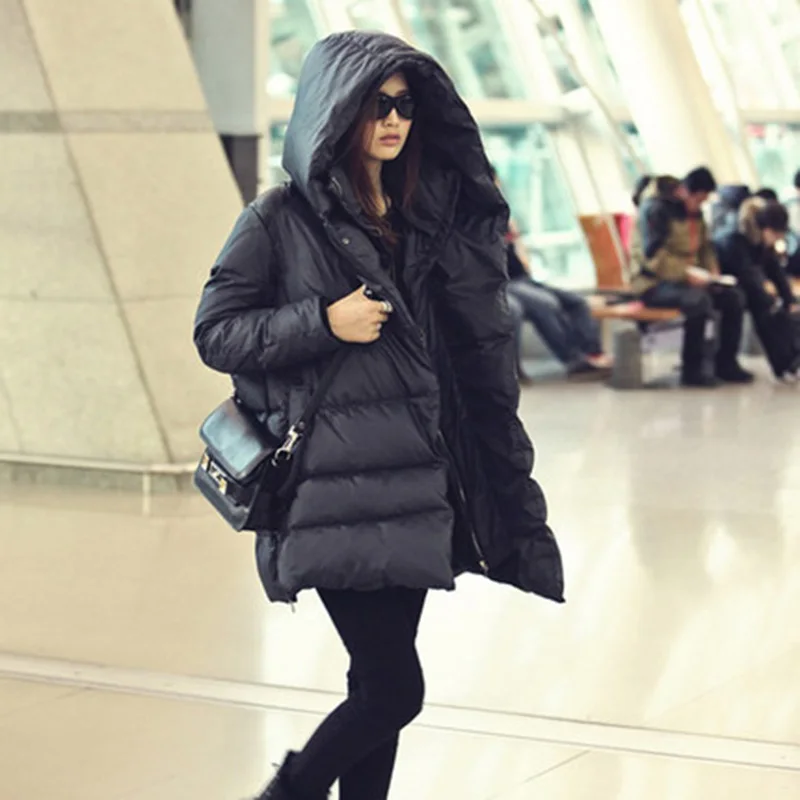 Пуховик женский зимний, черный, темно-синий, большой размер, 2020