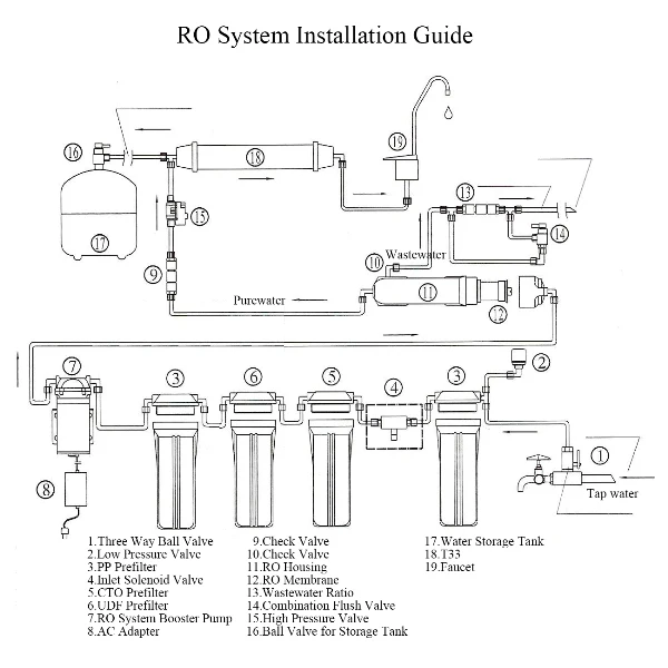 Мембранный корпус RO изготовлен из высококачественного полигропилена.