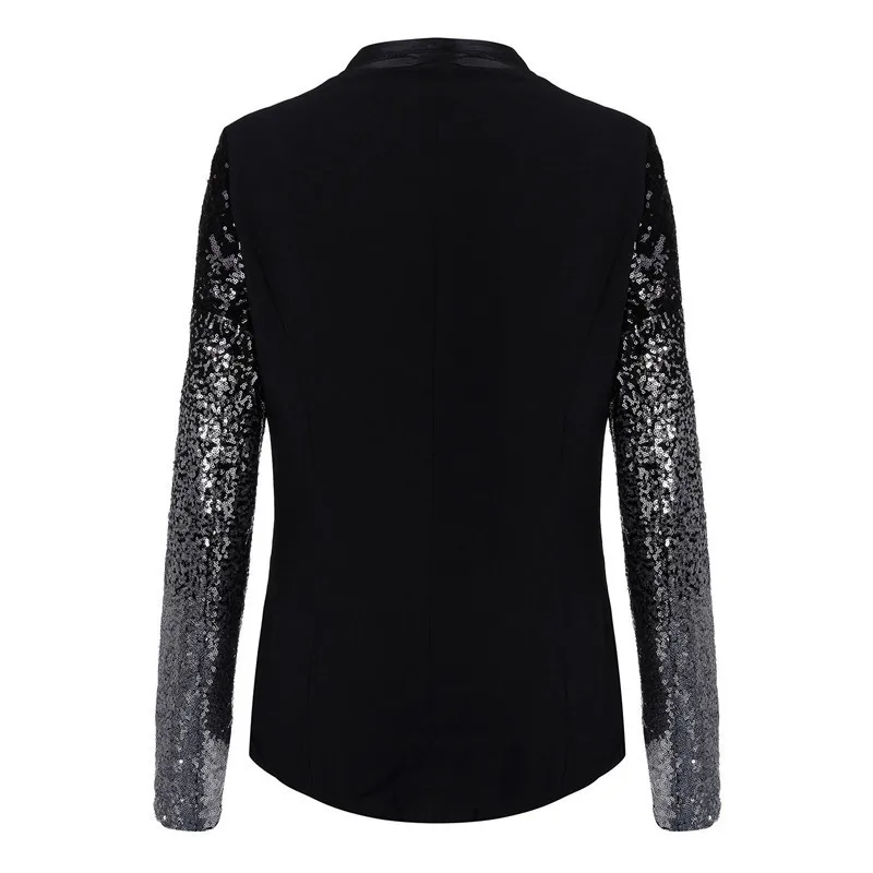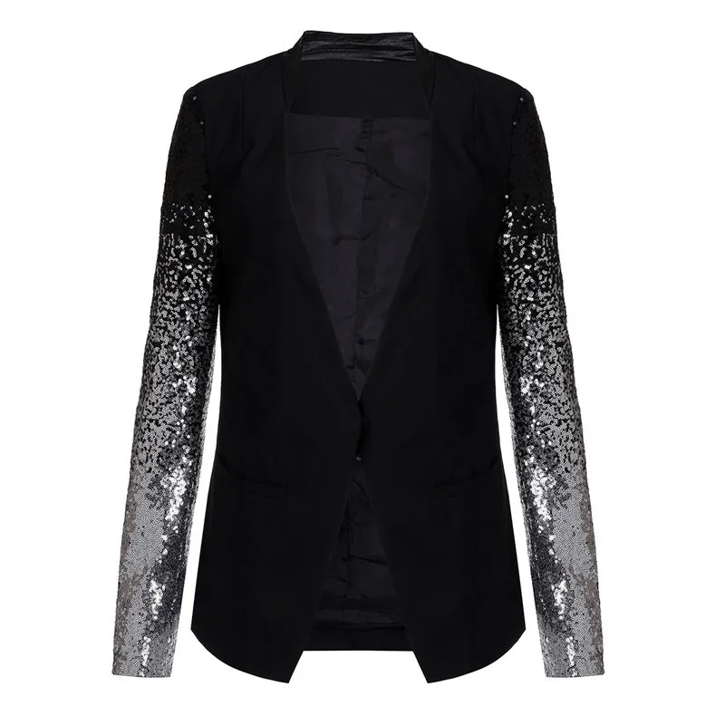 Женский блейзер с блестками, серебристо-черный блейзер с длинным рукавом и лацканами, весна-осень 2015