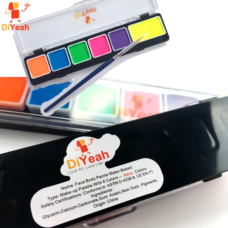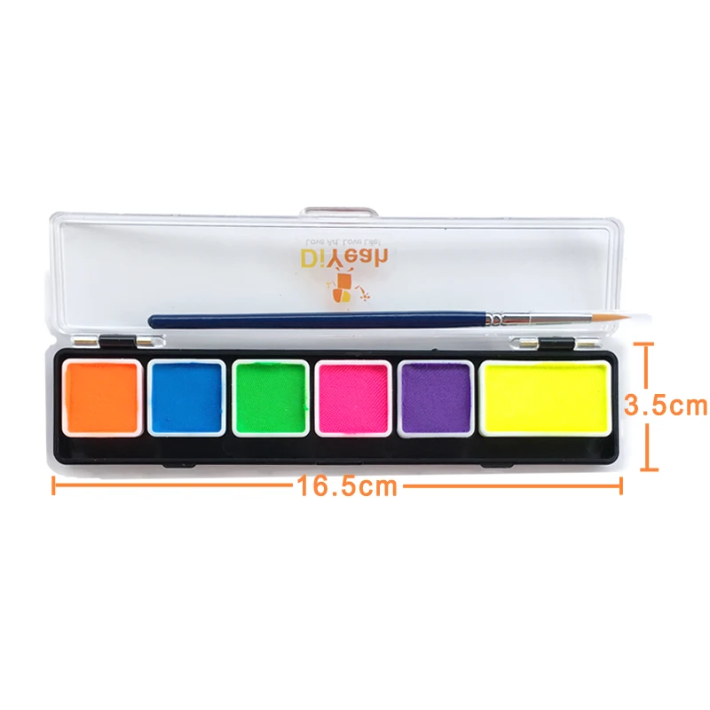 Краска для лица, 6 цветов, набор неоновых флуоресцентных красок с кистью, пигментная краска для макияжа, временная тату для Хэллоуина