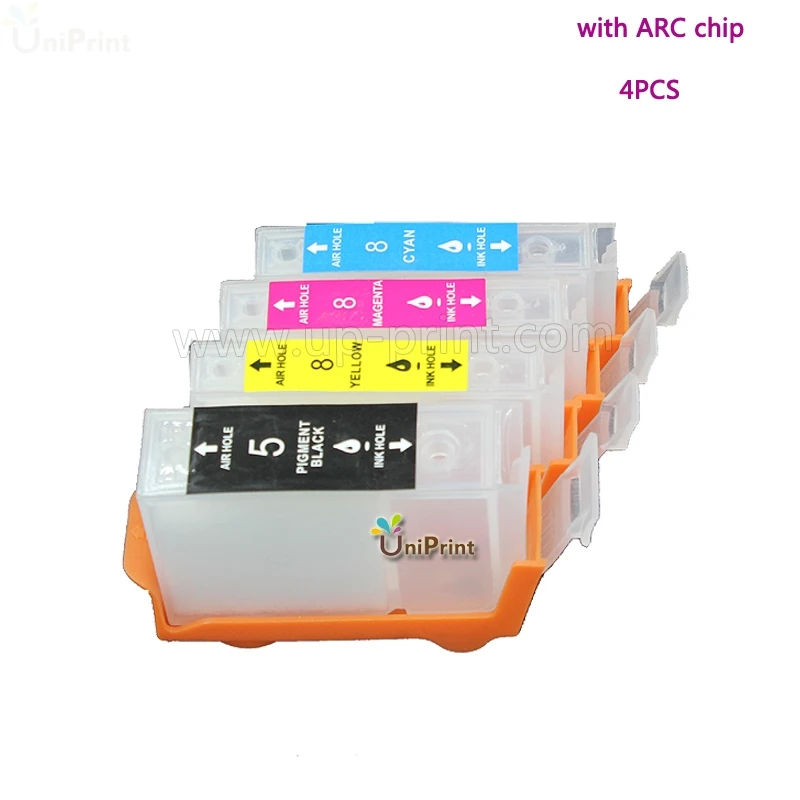 1x черный многоразовый картридж с черниламиДуговой чип дляCanon PGI-5 BK 1x CyanМногоразовыйЧернильный картридж сДуговой чип дляCanon CLI-8 C 1 пурпурныйМногоразовыйЧернильный картридж сДуговой чип дляCanon CLI-8 M 1x ЖелтыйМногоразовыйЧернильный картридж с чипом ARC для Canon CLI-8 Y