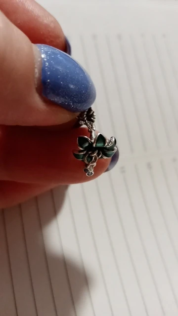 Очень красивый и совершенный аксессуар. Сначала, когда я его увидел, я испугался, потому что он очень маленький, но он переходит в браслет Пандоры без проблем. Я не знаю, серебряное ли это изделие, но оно приносит его уплотнение и сильно блестит. Быстрая доставка Непревзойденная, на следующий день после того, как я заказал его, я уже получил его дома☺②