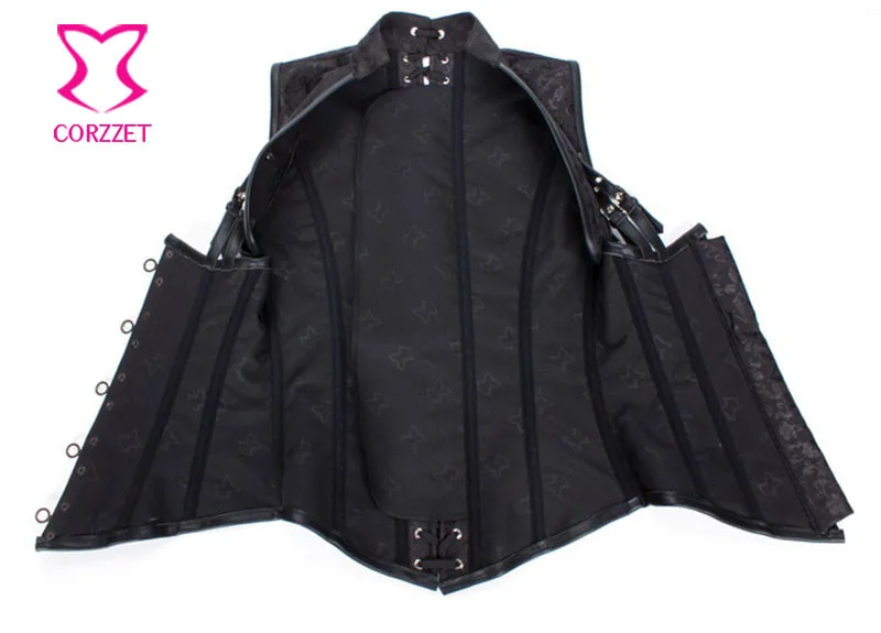 Готический Воротником Топ Браун Стимпанк Корсет Под Грудью Куртка Жилет Плюс Размер Корсеты и Бюстье Стали Кости Korsett Для Женщин Сексуальная