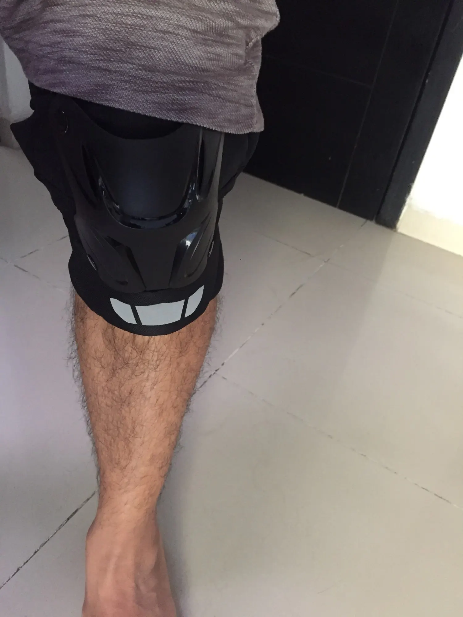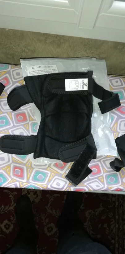 Заказ хорошо упакован и очень быстро. Защита удобна при ношении согнутой ноги, но одна из полос (внутренняя часть) очень короткая и не застревает, поэтому вы прикреплены только к белькро.