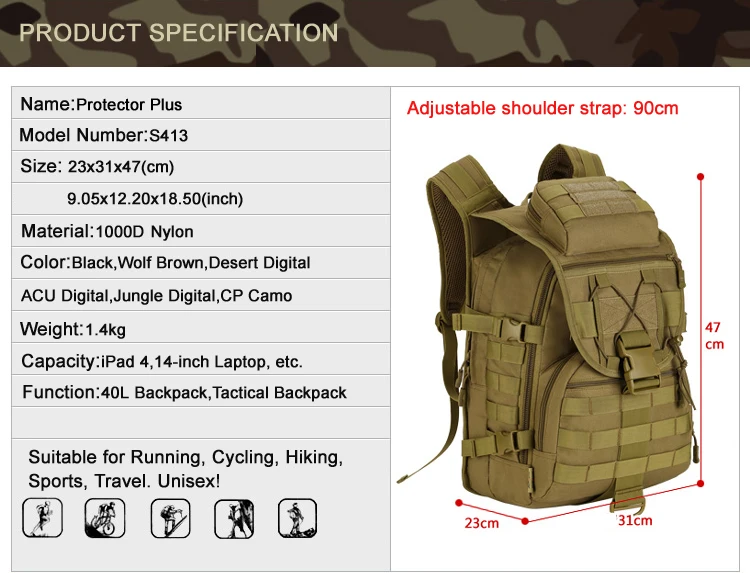 Мужские рюкзаки Protector Plus 40 л, армейские тактические военные ...