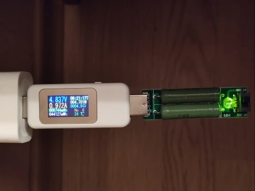 Я не понимаю, почему, но в этом случае зарядные устройства не хотят этих зарядов, даже на калибре 1A. Ток, измеренный на 2A, составляет 1,567A, а на 1A-653mA на самом деле. Я считаю, что это слишком жарко. Было бы необходимо иметь лучшее тепловое рассеивание. Вы можете смеяться, если вы не будете осторожны!