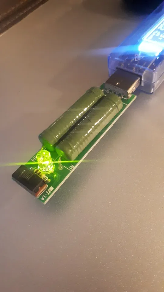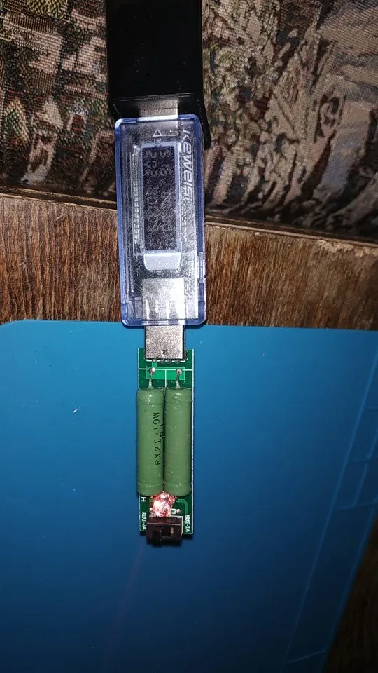 Хороший качественный резистор. Кнопки переключения нагрузки работают. В зависимости от нагрузки меняется цвет лампочки. Удобно для разрядки аккумуляторов и повербанков. Совместно с тестером можно проверять зарядные устройства и кабели.
