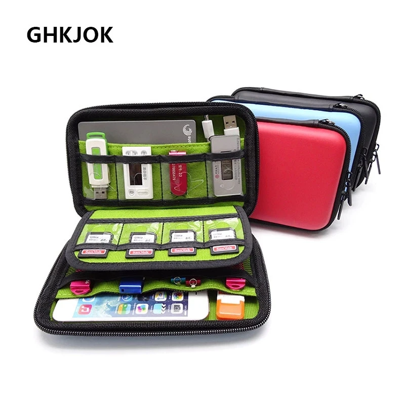 Жесткий чехол GHKJOK из искусственной кожи, органайзеры электронных аксессуаров для U-диска, SD-карты, USB флеш-накопителей, жесткого диска Power Bank