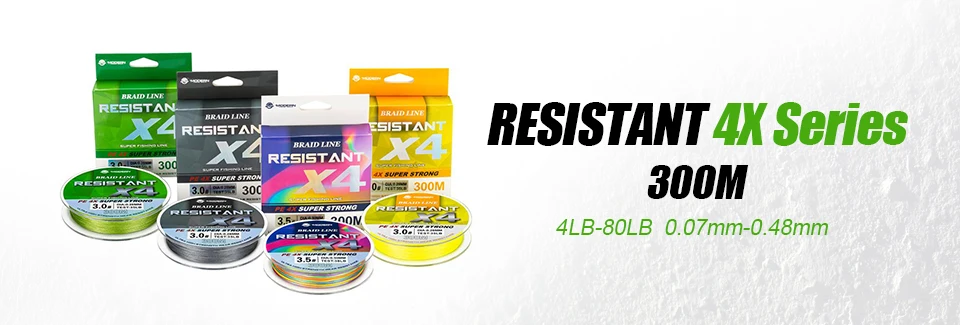 Леска рыболовная из ПЭ, 4 пряди, 8-80 фунтов, 300 м