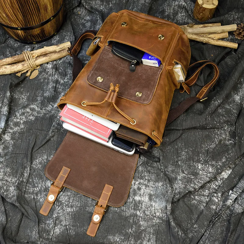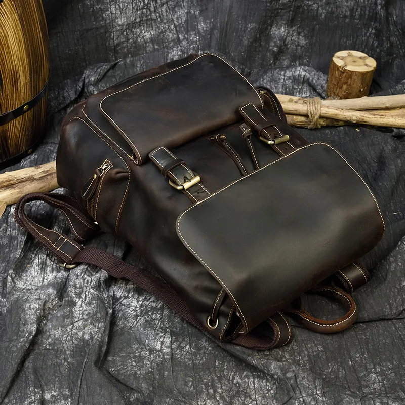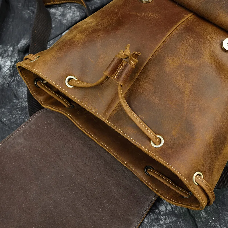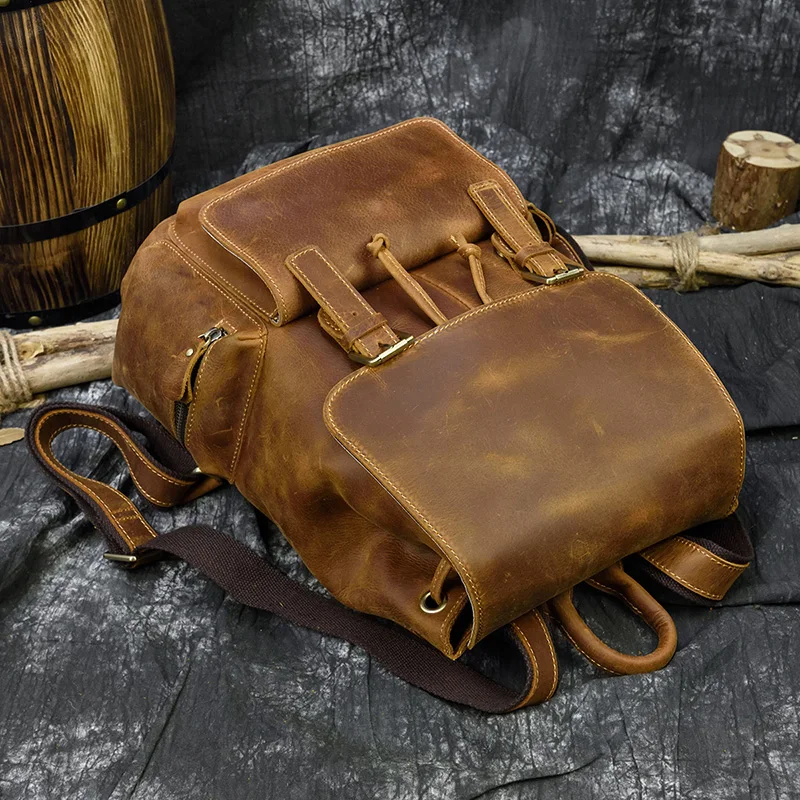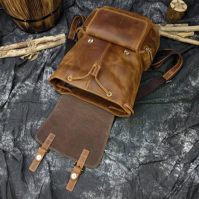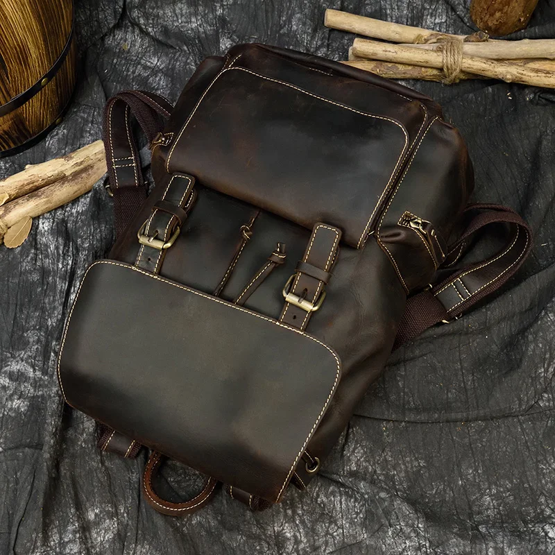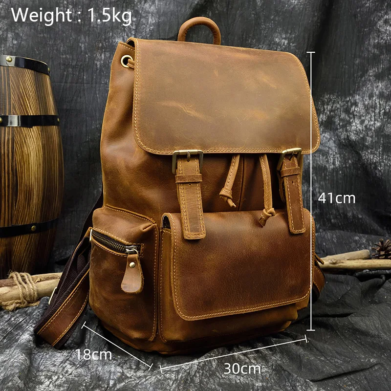 Мужской рюкзак MAHEU в стиле ретро из воловьей кожи, сумка на плечо из кожи Крейзи Хорс, оригинальный школьный ранец ручной работы