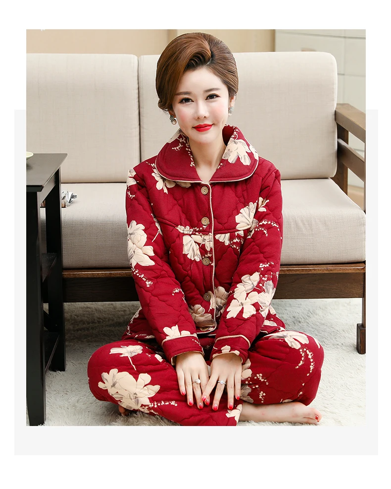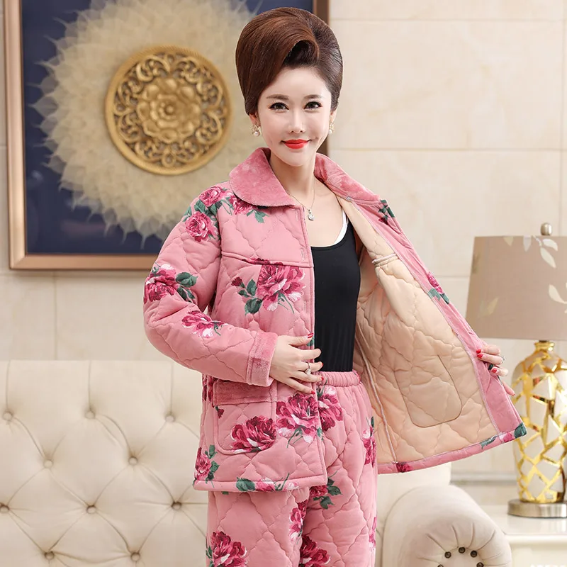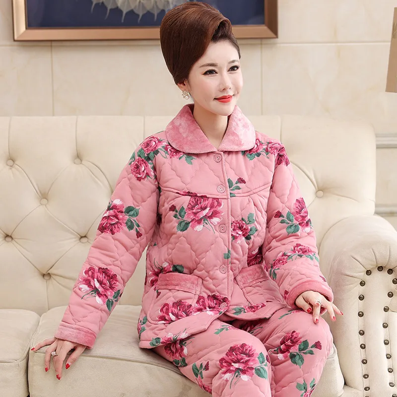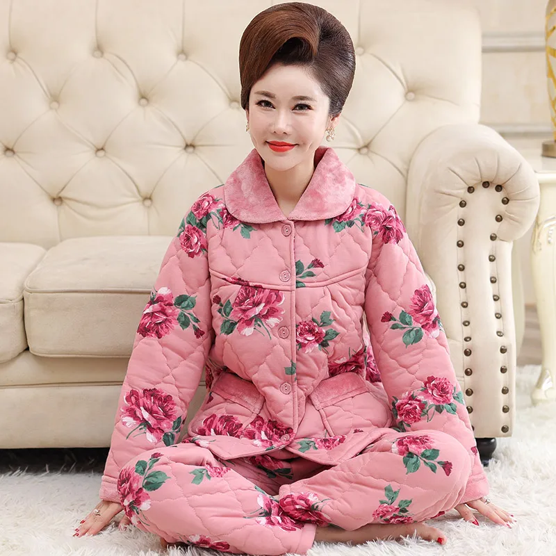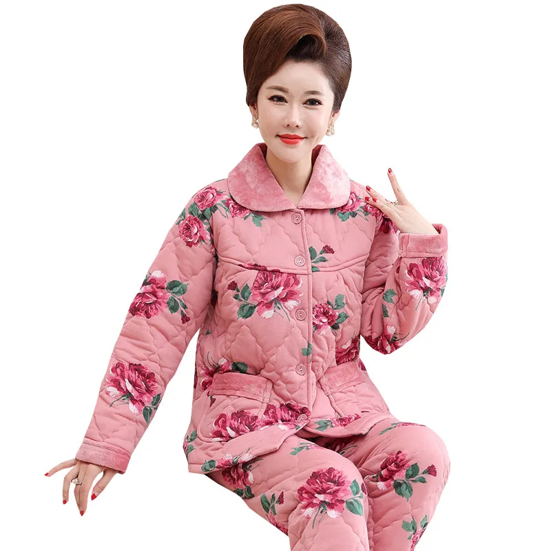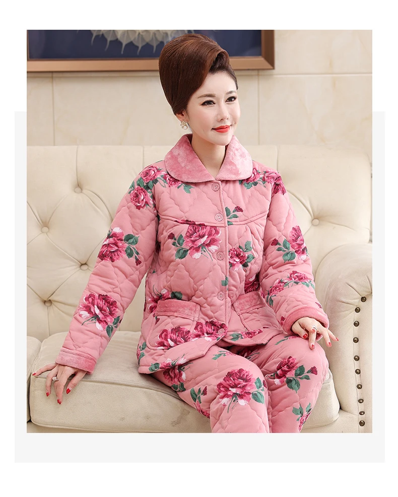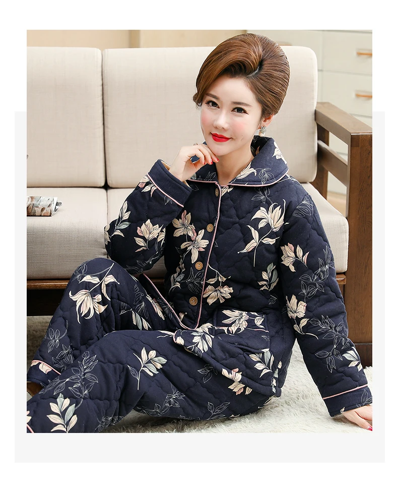 Пижама для женщин, три слоя плотная теплая зимняя стёганая куртка для женщин, одежда для мальчиков, хлопковая Пижама пижамы с цветами mujer inverno размера плюс, спортивный костюм